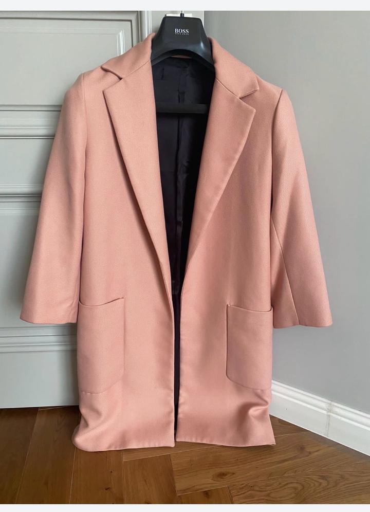 Весеннее пальто Zara р 42, без пуговиц, персикового цвета, длина 92, рукава Артикул: 488250