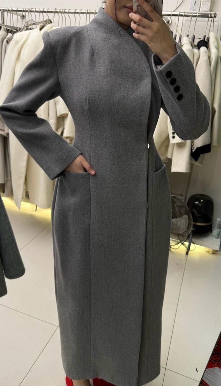 Серое приталенное пальто SS