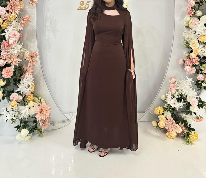 Коричневое ,длинное и потрясающее платье . На спине есть утягивающие завязки , поэтому сядет по фигуре . Только на 1 мероприятие надевала Артикул: 488428