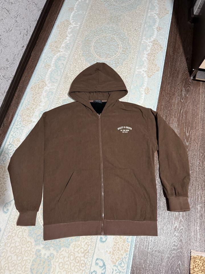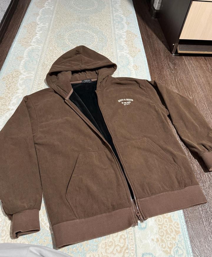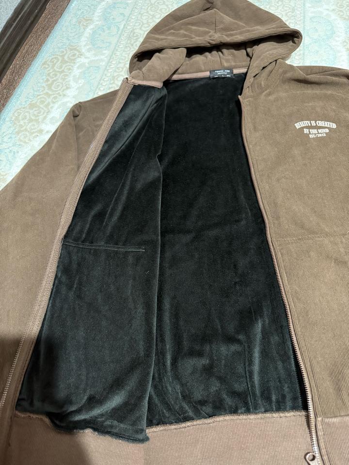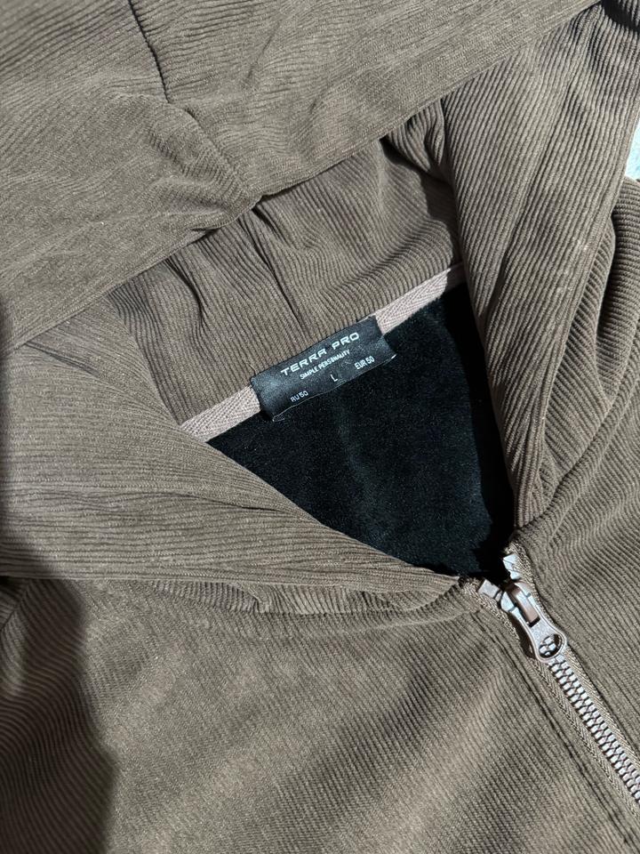 Коричневое вельветовое зип худи в рубчик В идеальном состоянии Надевала 3 раз Размер L, я ношу S, надевала как оверсайз Он даже на XL подойдет хорошо Покупала в мужском отделе, он унисекс Внутри флис, очень приятен к телу и очень теплый Артикул: 488439