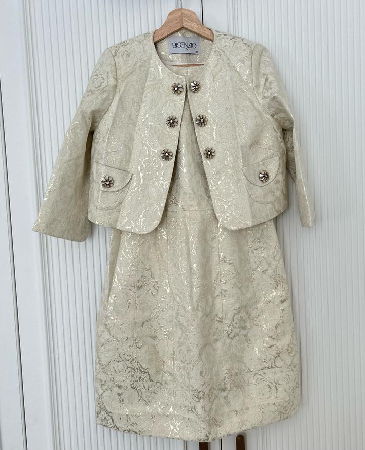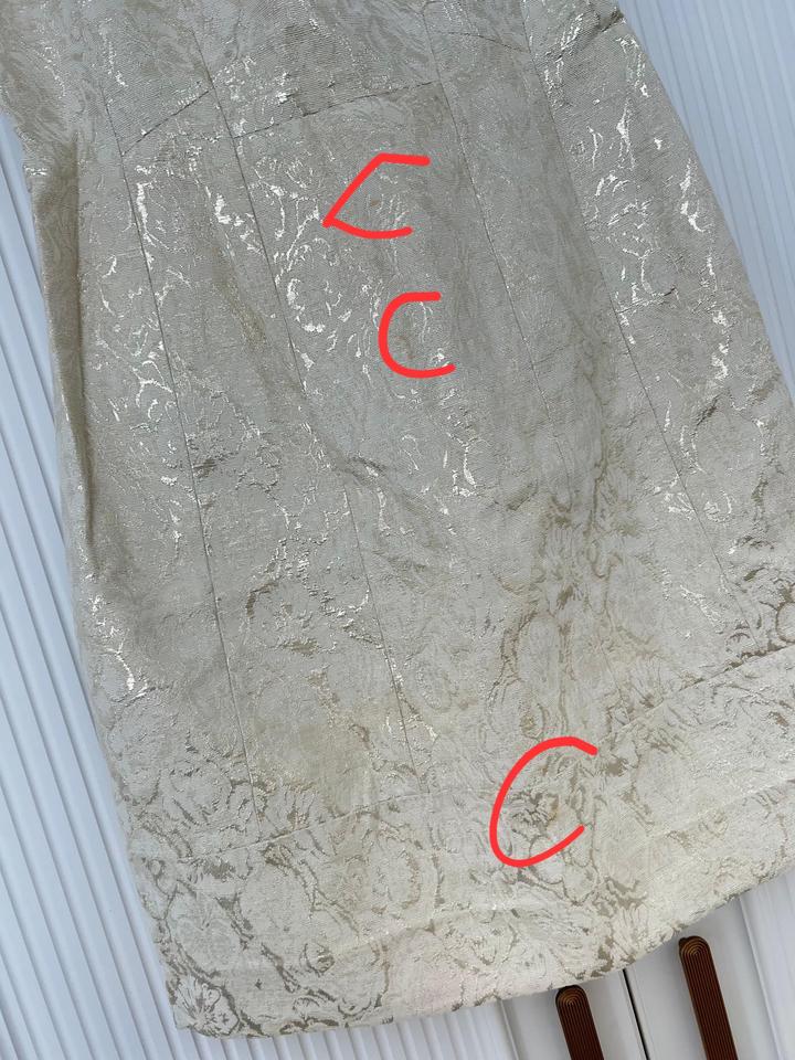 ‼️ с 14 по 30 марта меня не будет в городе, в случае покупки – могу отправить 31 марта ‼️ Продаю красивущее платье в золотистом цвете с пиджаком от турецкого бренда Balizza (покупалась за дорого) в размере L (40), но можно носить тем, у кого М (38), материал парча, изнутри имеется подклад. Когда фоткала, обнаружила небольшие пятна на самом платье, но их можно отстирать. Артикул: 488565