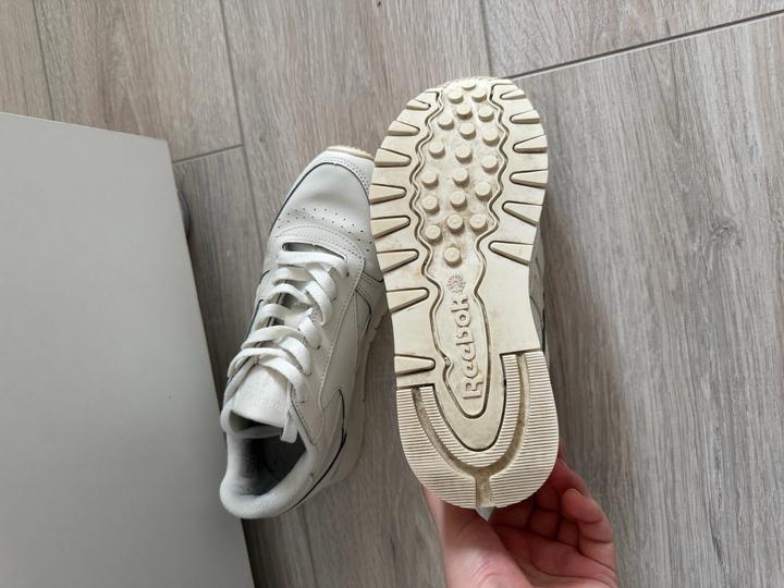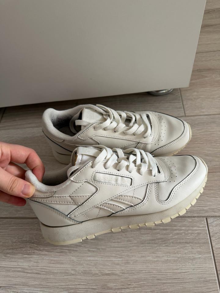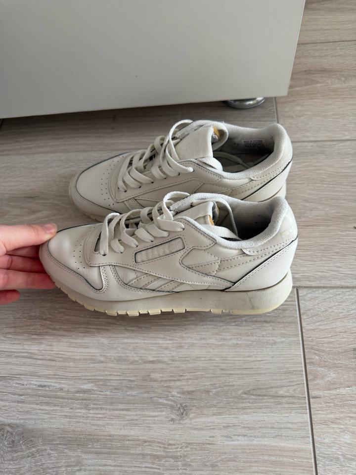 Продам бежевые кожаные кроссовки Reebok. Почти новые, носились совсем мало. После химчистки. Причина продажи — не подошёл размер. Покупала за 60 000 тг. В отличном состоянии. Артикул: 488902