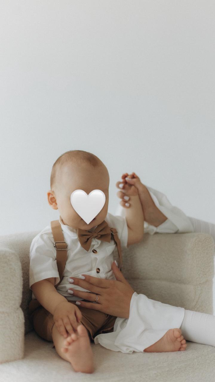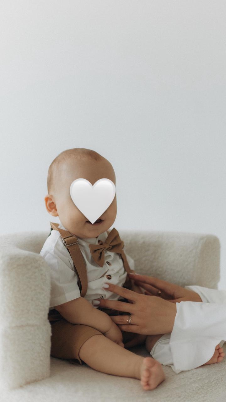 В идеально состоянии, шорты, рубашка, банти, подтяжки Одевали только на фотоссеию Размер 90, на один год отлично подойдет Артикул: 488909