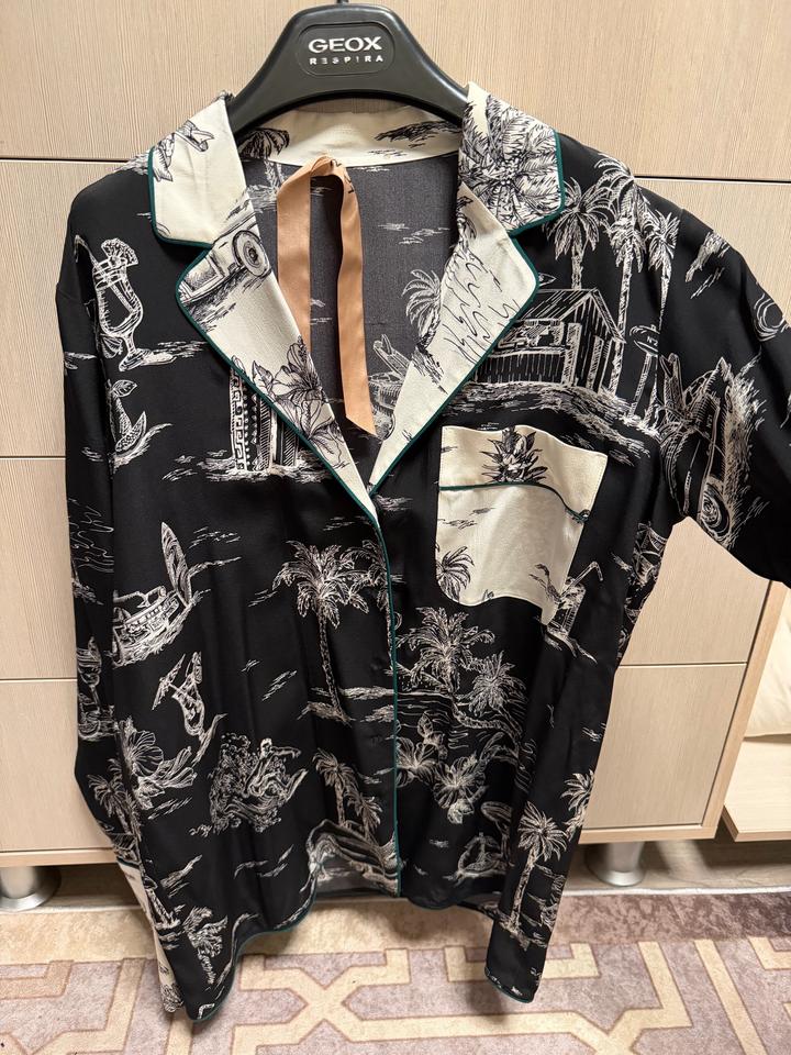 Пижамная Рубашка с красивым принтем, 100% шелк. Артикул: 489065