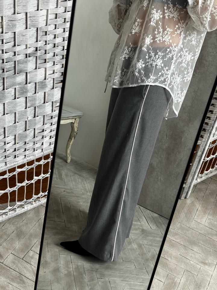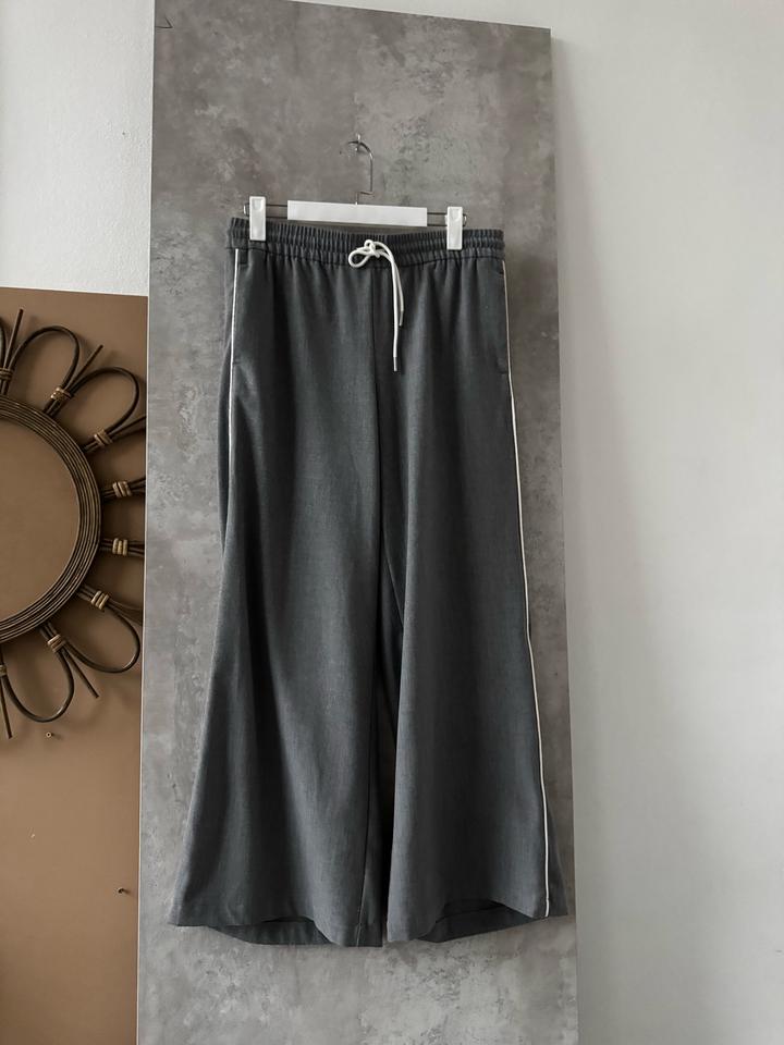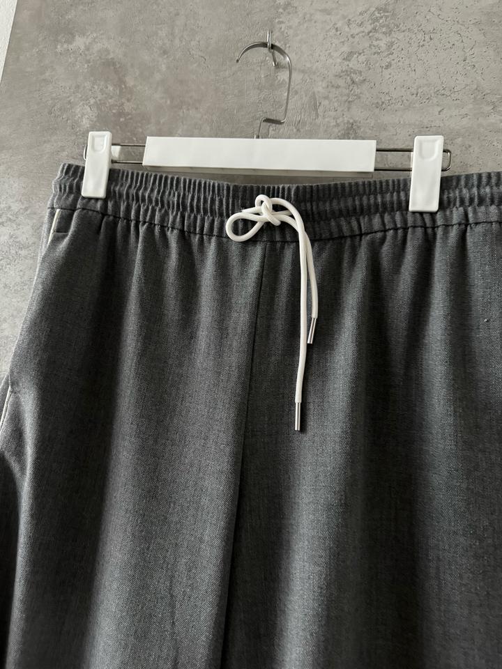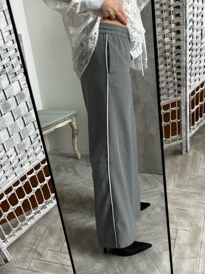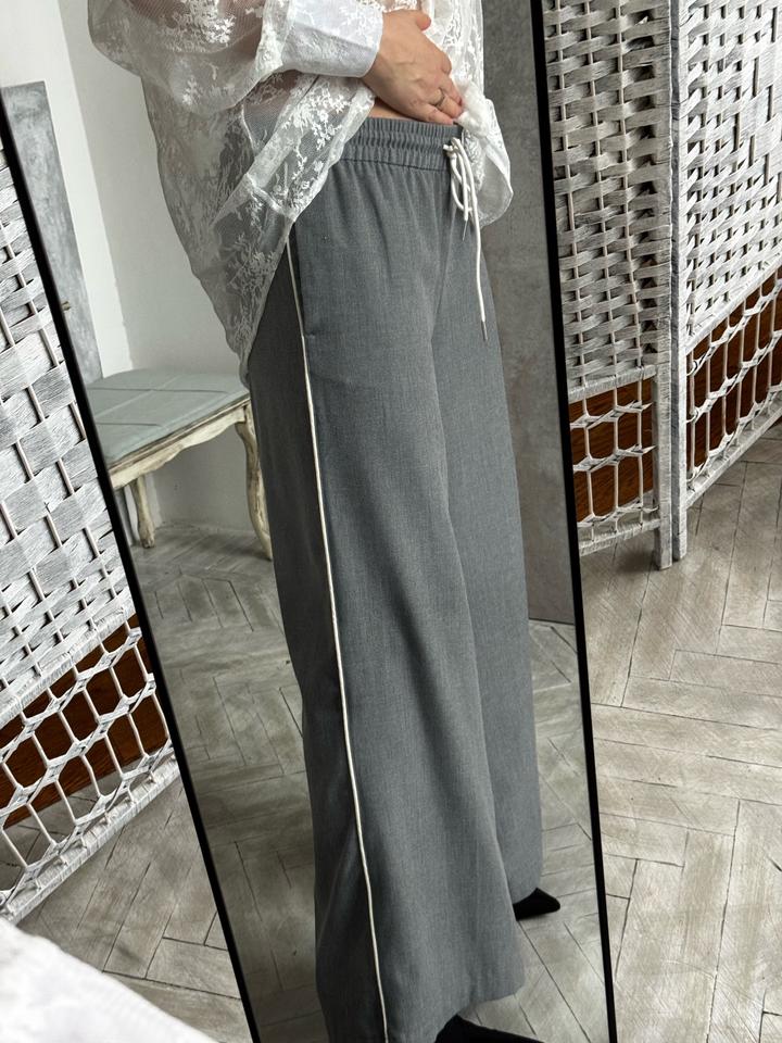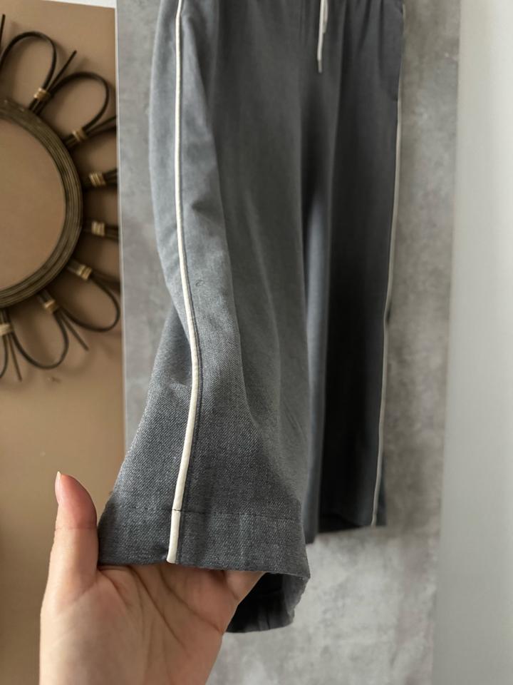 Брюки серые H&M костюмные с тонким белым лампасом . Пояс на резинке, талию можно регулировать. Привезли на заказ, но размер не сел, новые, без бирки. Размер 44, рост не высокий. Артикул: 489169