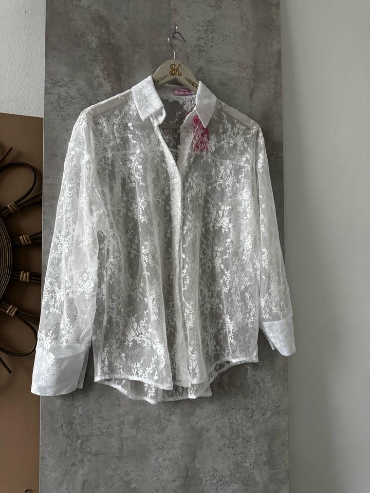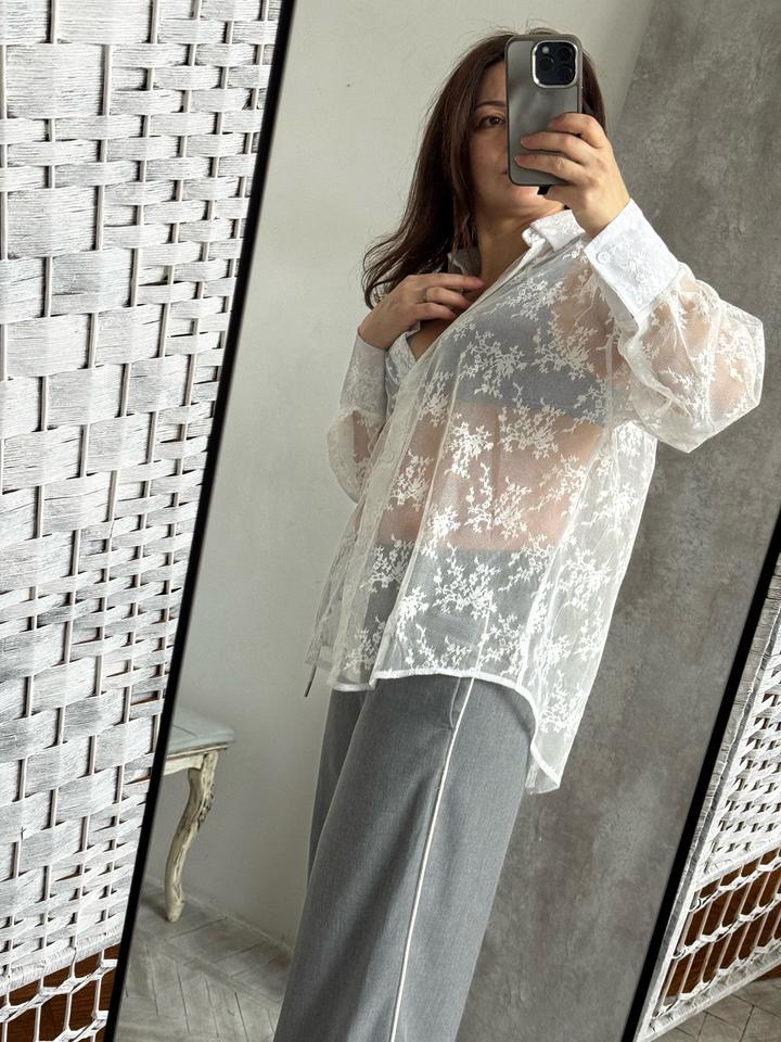 Блуза белая гипюровая, новая с этикетками пр-ва Киргизия Очень нежная, застежка на пуговицах, рукав длинный, можно подвернуть, будет стильно смотреться Можно создавать многослойность или накинуть на платье Размер есть 44 и 46, но можно и на 48 так как блуза свободная. Артикул: 489182