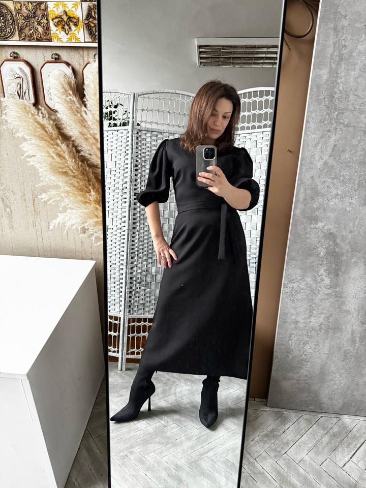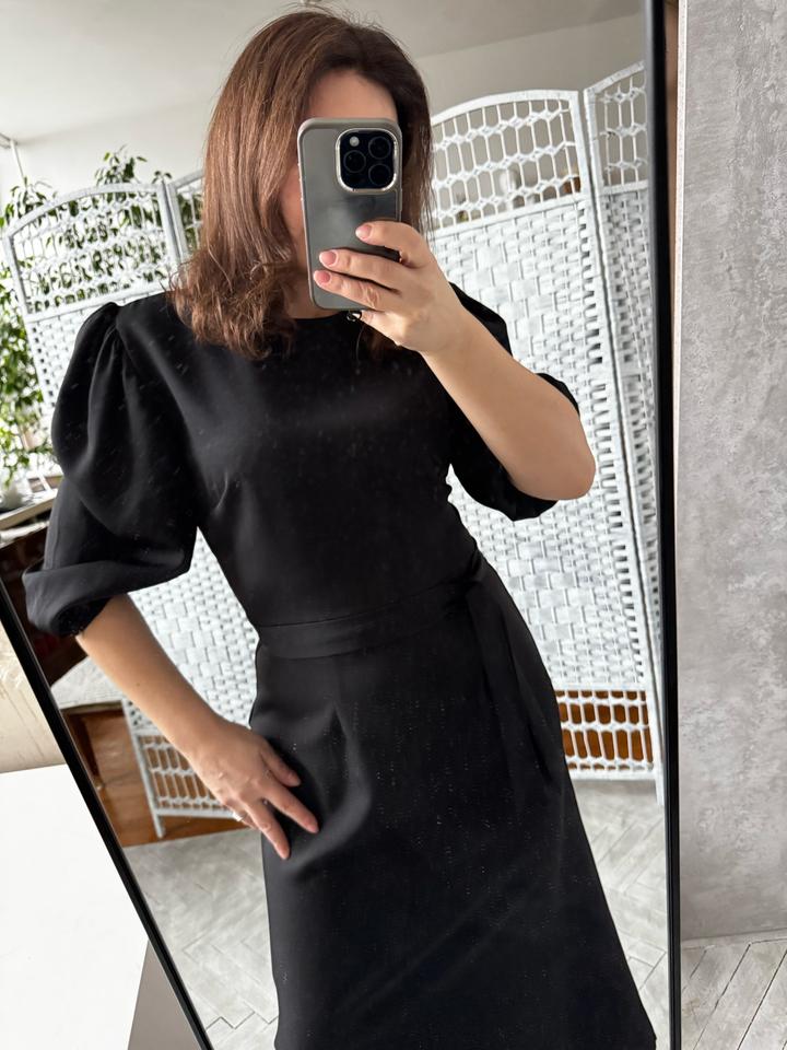 Платье черное, по фигуре с эффектными рукавами в комплекте пояс. Фирмы Summer оригинал. Новое с этикеткой. Распродажа после закрытия магазина офлайн. Размер 44. Артикул: 489190
