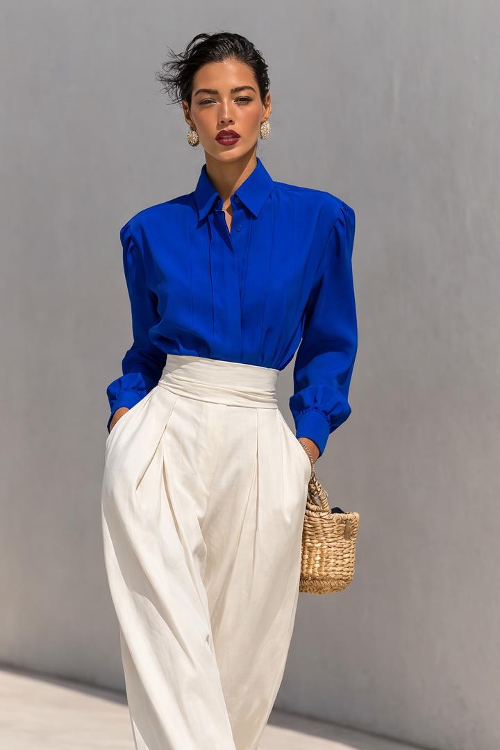 Притягательная,своим роскошным оттенком синего, блуза. Артикул: 489278