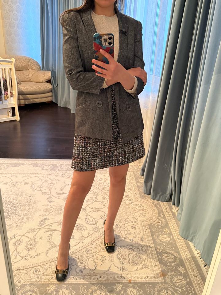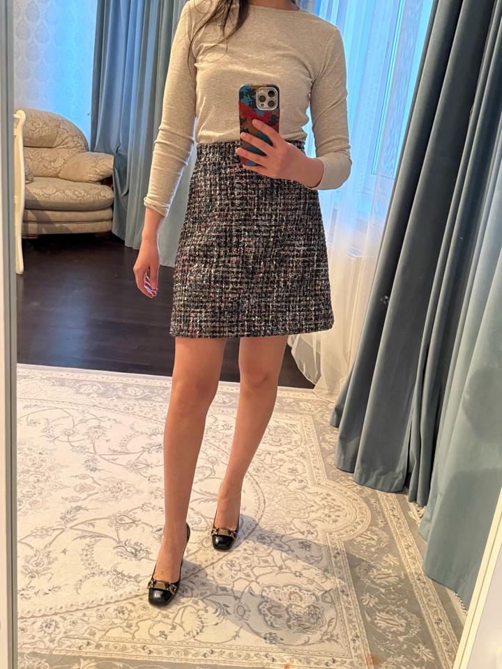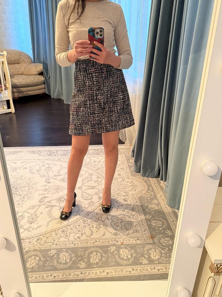 Промокод на первую покупку -2000 тг. 1NCTUR Новая юбка. Очень хотела такую, но в продаже все слишком короткое, поэтому сделала на заказ в ателье, но так и не надела. Очень красивый материал, не много с пайетками, на подкладе. Легко сочетать. Обошелся с тканью и работой почти в два раза дороже. Туфли и жакет также выставлены Артикул: 489318