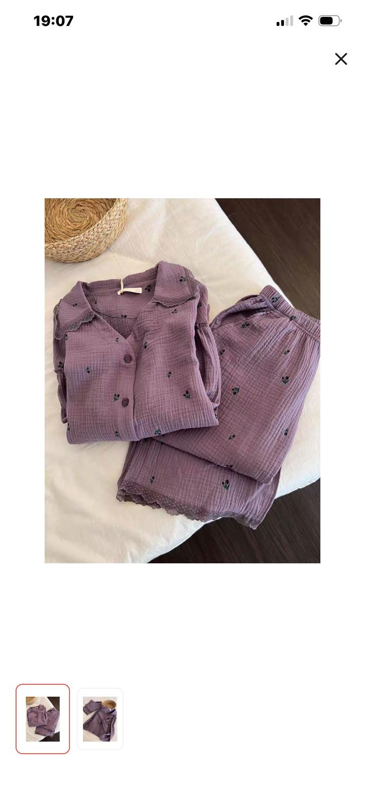 Лёгкая пижама, состоящая из брюк и верха в виде рубашки с длинными рукавами. Свободный крой обеспечивает комфорт и не сковывает движения. Артикул: 489326