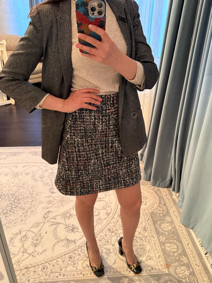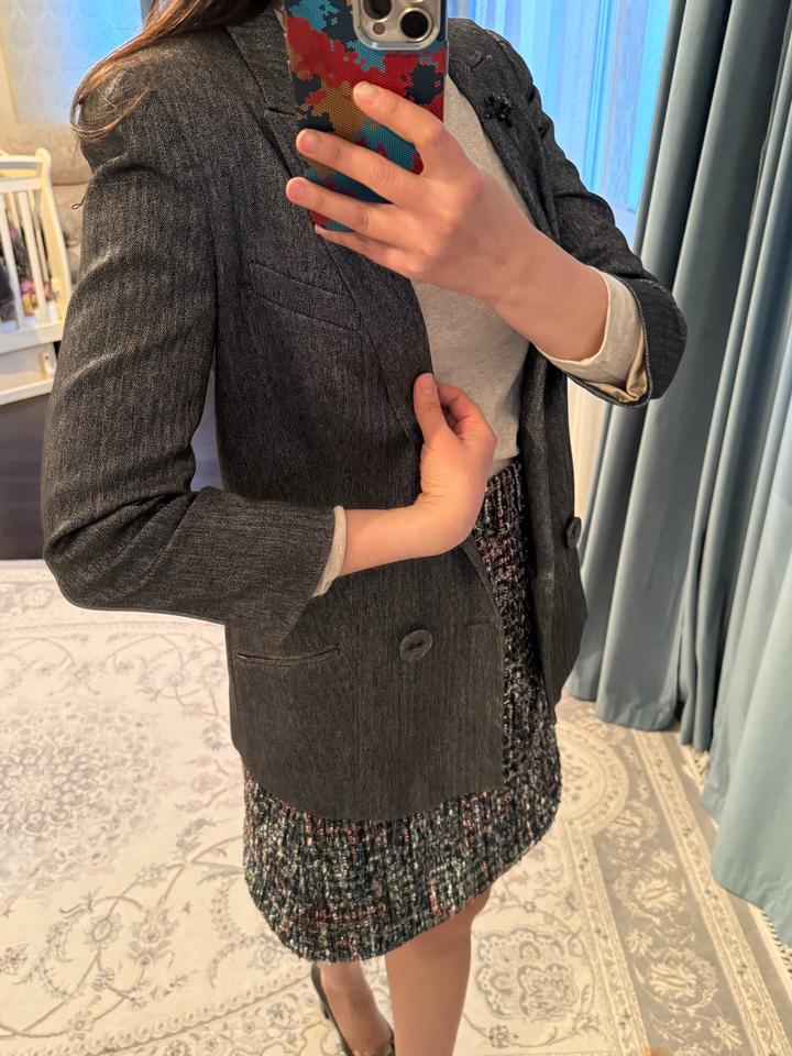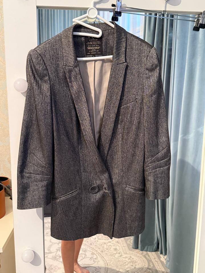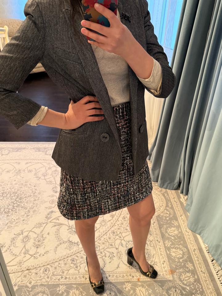 Промокод на первую покупку -2000 тг. 1NCTUR Симпатичный пиджак на повседневку. Можно и с джинсами и с офисным. Видимых следов носки нет. Красивый цвет Английский бренд, дороже масс маркета Юбка и туфли также в продаже Артикул: 489343