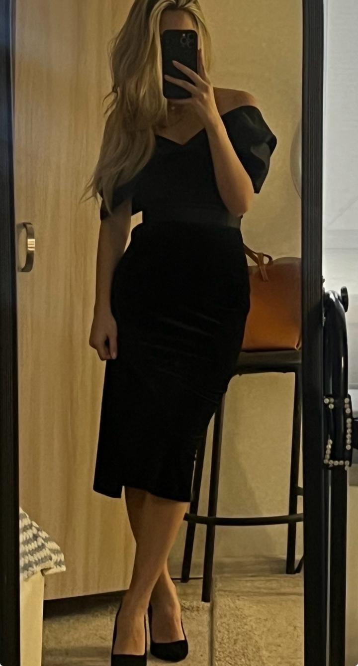 Очень красивое черное платье ниже колен с поясом. Размер S/M Артикул: 489395