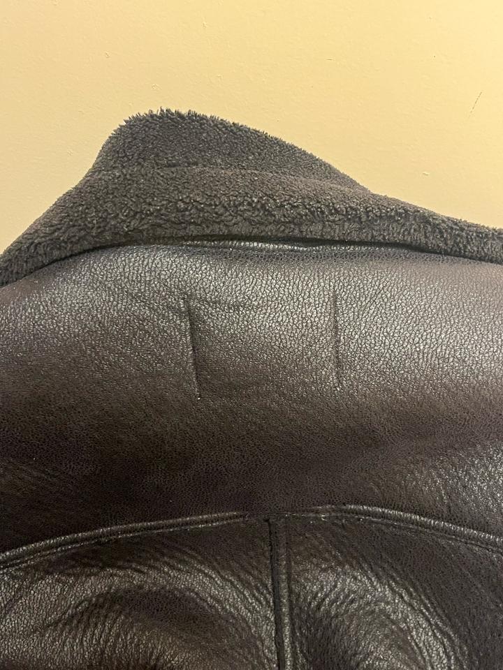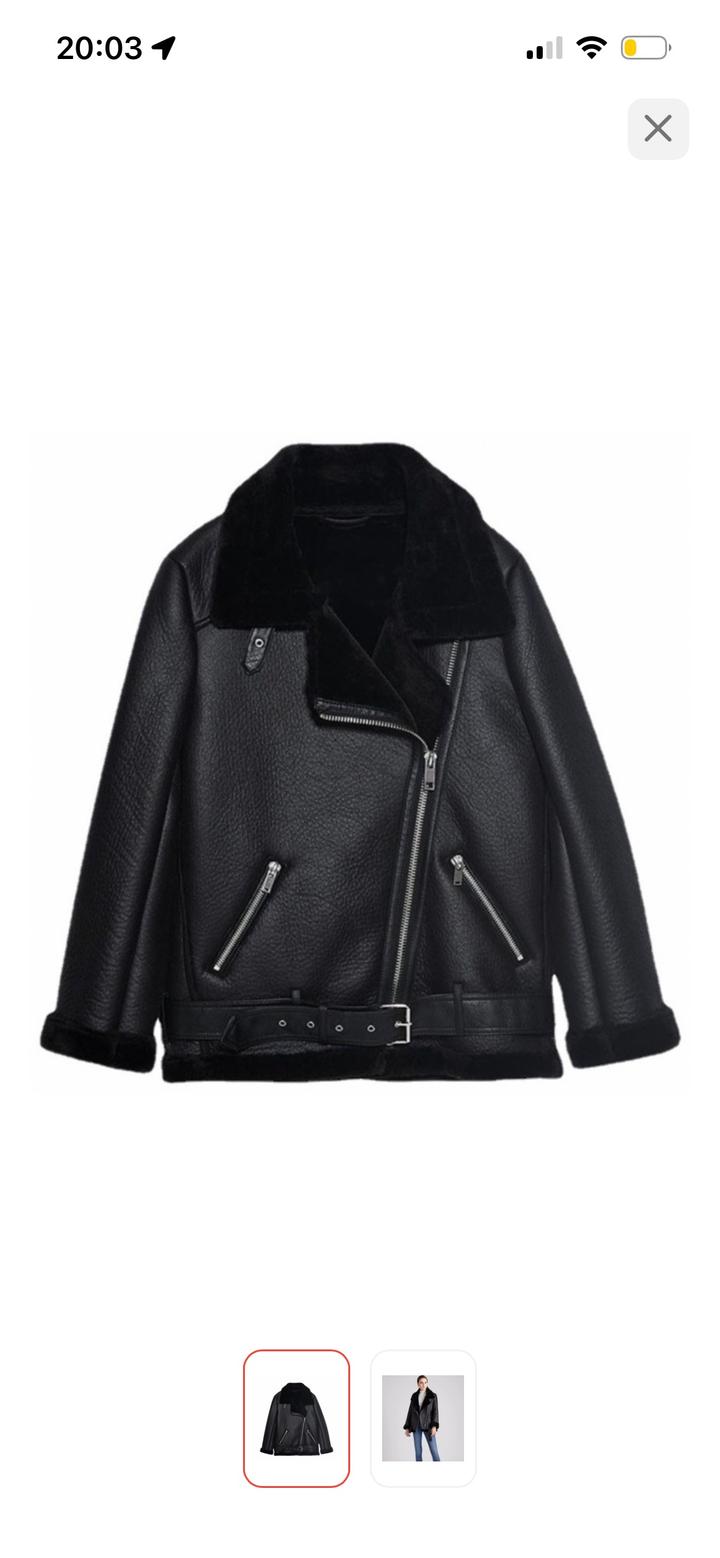 Дубленка авиатор Zara очень давно покупала когда еще она только только продаваться начала По времени уже сзади где есть кожа немного начало отпадать(говорю сразу) по возможности приложу фотографию а так все остальное в целости сохранности Всегда обслуживалась только в химчистке так что даже приторного запаха не будет Теплая и реально на зиму даже Астанинскую она самое то🫰🏼 Брала спкйиально чтоб было оверсайз Артикул: 489469