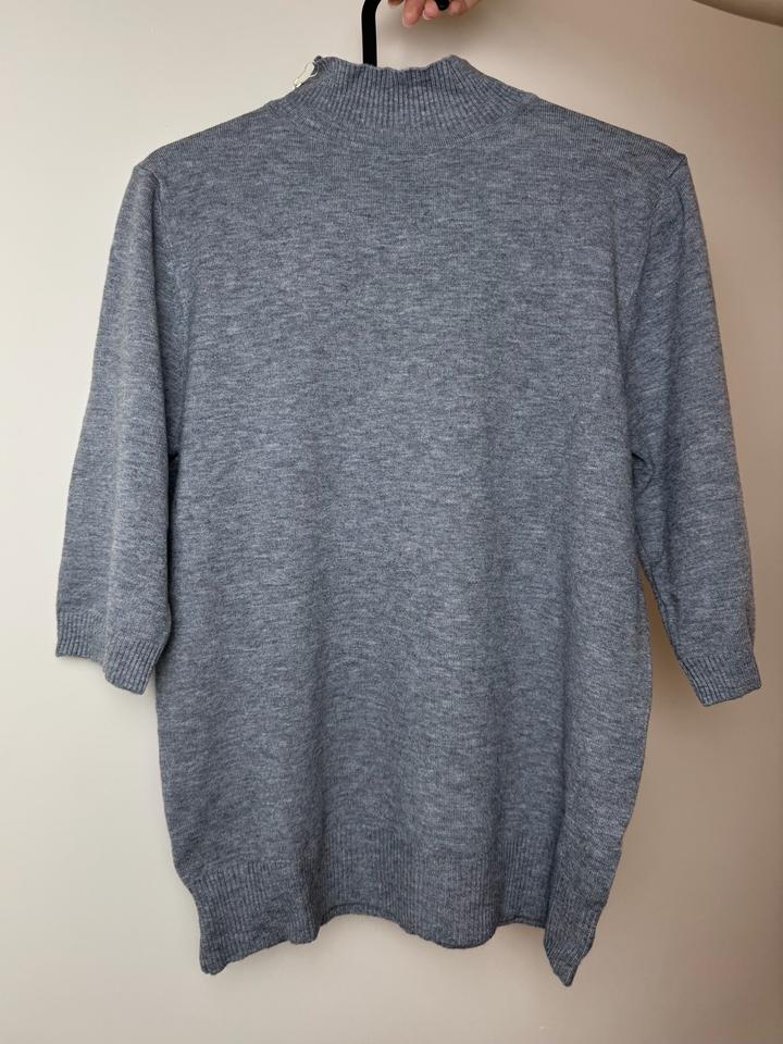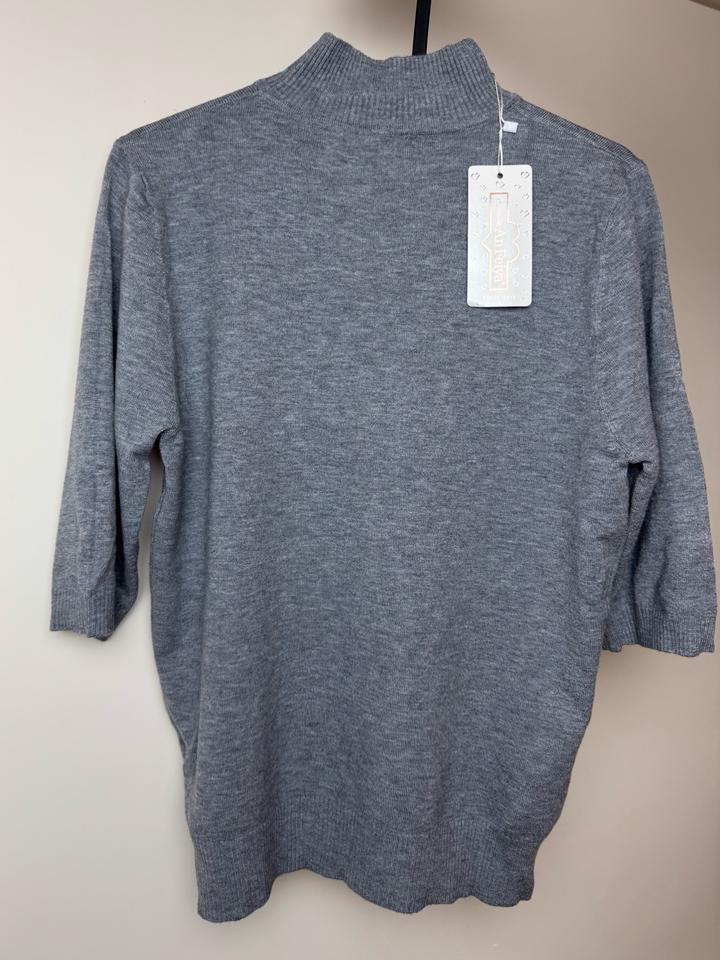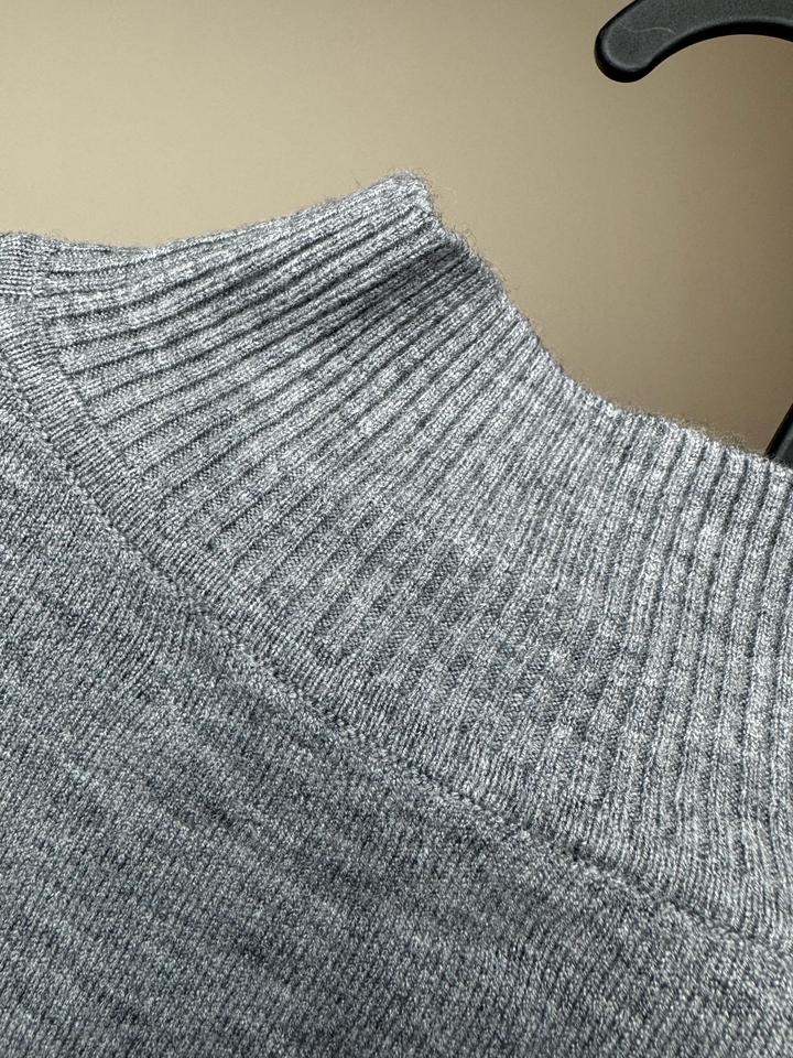 Джемпер с кашемиром и шерстью (An Feiya) Лаконичный базовый джемпер благородного серого меланжевого цвета. Модель с воротником-стойкой и актуальным рукавом 3/4. Очень мягкий, приятный к телу трикотаж премиального качества. • Состояние: Новое (с биркой). • Силуэт: Прямой, воротник-стойка, эластичные ман+7### ### ## ##к • 6% спандекс (отлично держит форму) Идеальная база под жакет или как самостоятельный элемент гардероба. Артикул: 489532