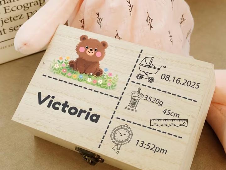 Хочу предложить персональные именные шкатулки для хранения первых воспоминаний малыша🥰 Можно выбрать разные принты и оформить с именем малыша ✨ Размер шкатулки: 10 см — ширина 15 см — длина 6 см — высота Цена: 5000 тг Если интересно — напишите в личные сообщения, покажу варианты принтов. Артикул: 489611