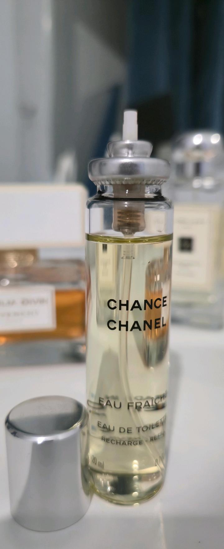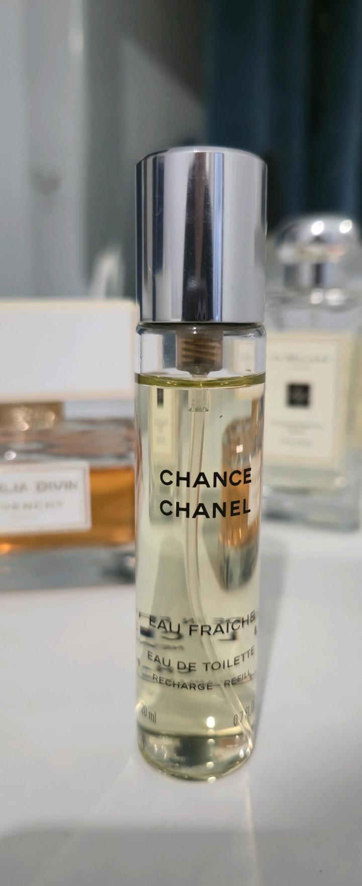Парфюм от бренда Chanel , Chance зеленый, тревел формата 20 мл, подойдет для тех у кого есть чехол пульвилизатор от шанель (как на картинке), в продажу не входит сам пульвилизатор. Брала в дьюти фри, торг уместен Артикул: 489721