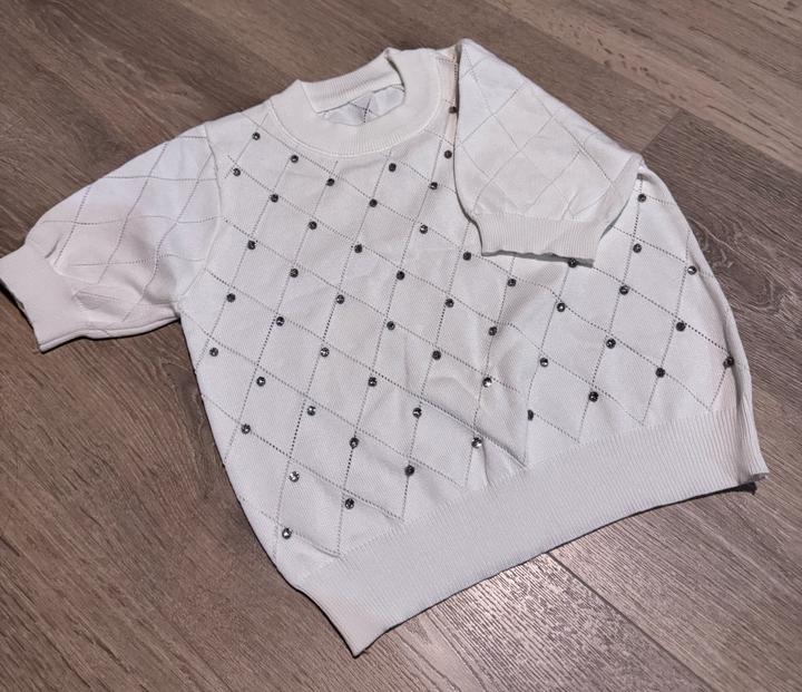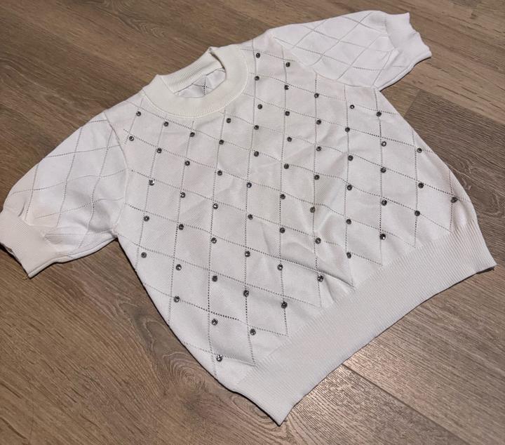 Белая кофта со стразамиXS