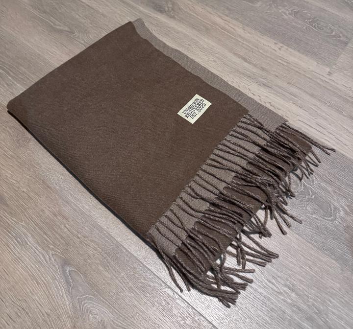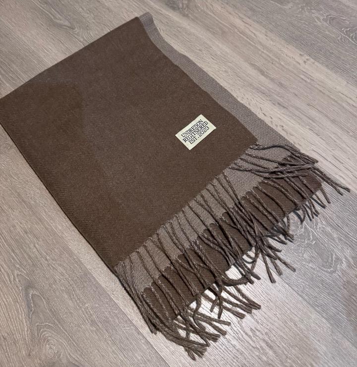 Шарф цвет коричневый, длинный и широкий, с одной стороны темно коричневый с другой светло коричневый. Артикул: 489779
