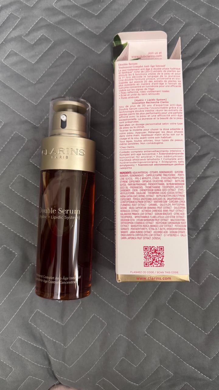 Полноразмерная сыворотка от Clarins double serum новый, с коробкой. По batch код можете проверить товар через сайты CheckFresh или CheckCosmetic. Так же сама коробка, флакон и шрифты все ровно, без ошибок. Продукт оригинальный, заказан через официальные сайты, не сомневайтесь! Если ваш любимый продукт, смело забирайте. Артикул: 489905
