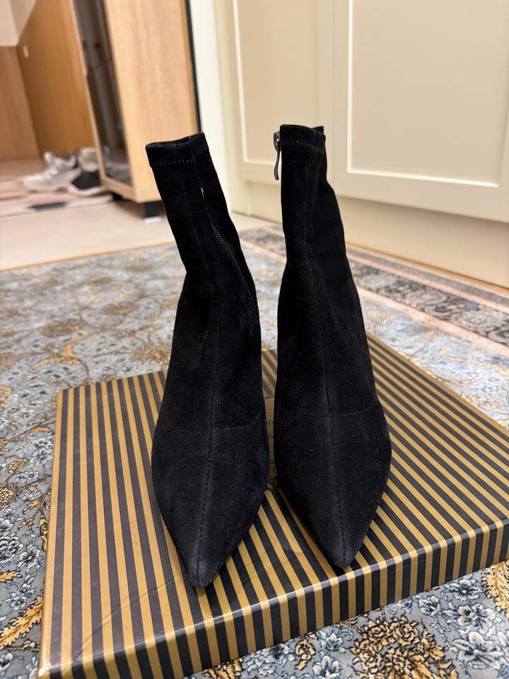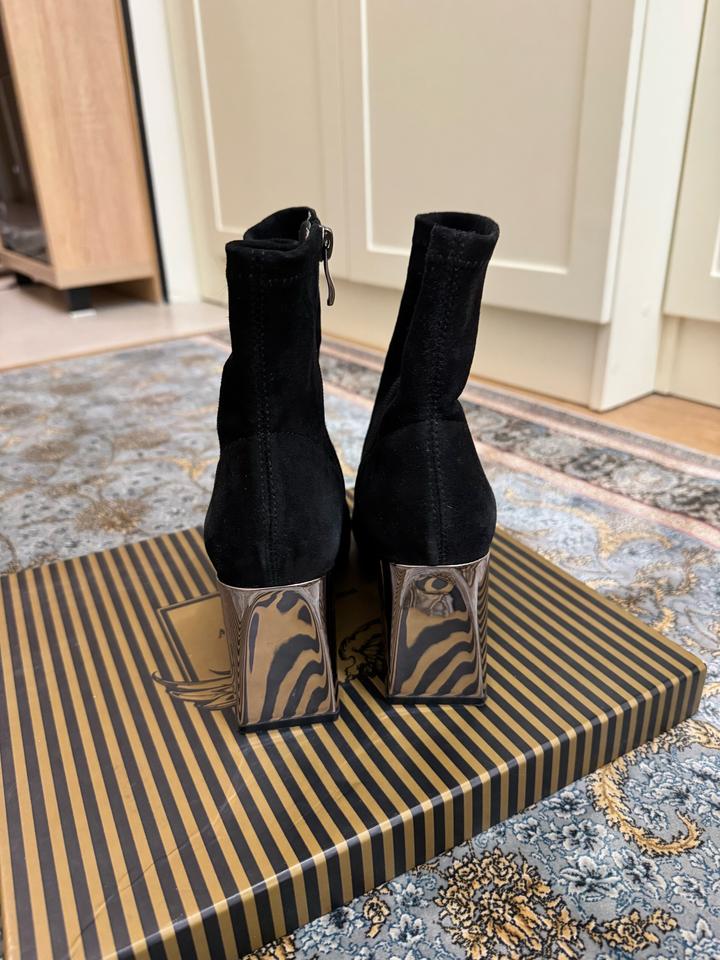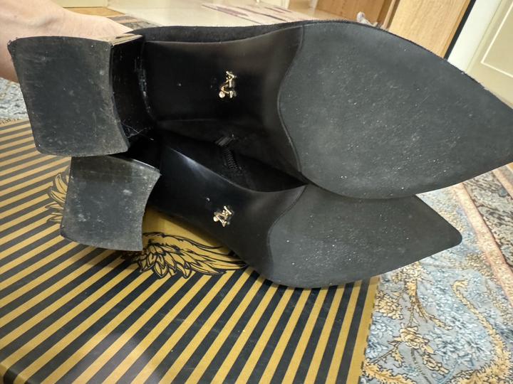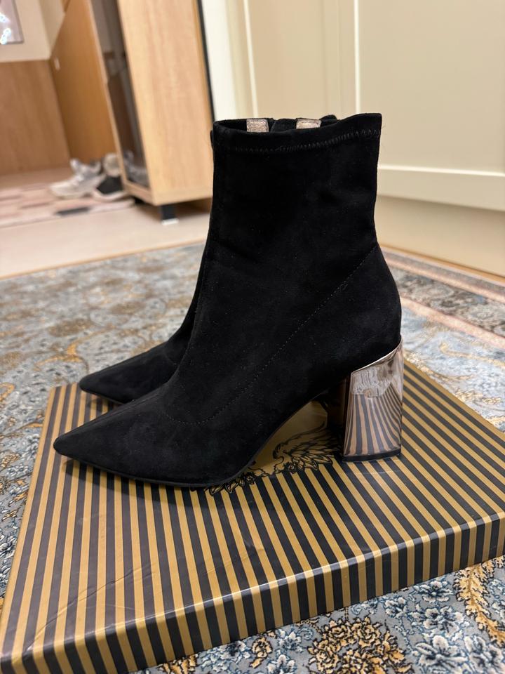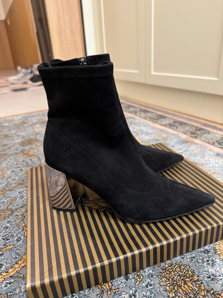 Ботильоны Angelina Voloshina 🖤 Элегантные чёрные ботильоны из мягкого бархатного материала. Стильная модель с острым носом и необычным зеркальным каблуком — смотрятся очень эффектно и дорого. ✨ Бренд: Angelina Voloshina ✨ Цвет: чёрный ✨ Каблук: устойчивый, зеркальный ✨ Носок: острый ✨ Состояние: почти новое, одевали 1 раз ✨ В комплекте: фирменная коробка Идеально подойдут как для вечернего образа, так и для стильных повседневных луков. Это оригинал, приложение не дает добавить этот пункт. Артикул: 490445