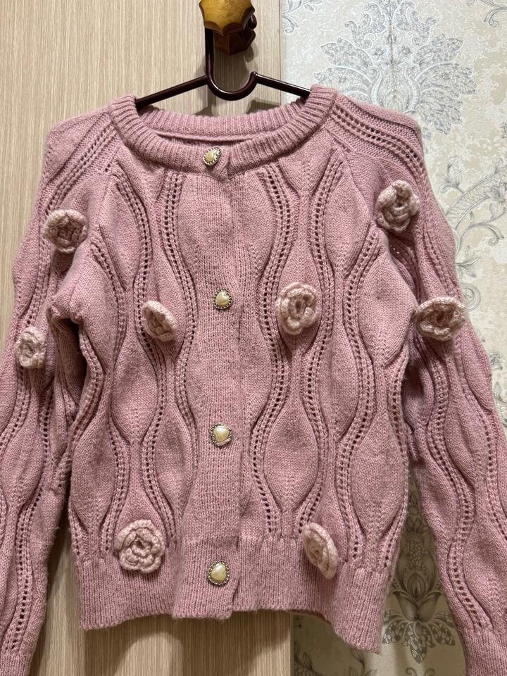 Розовый кардиганM