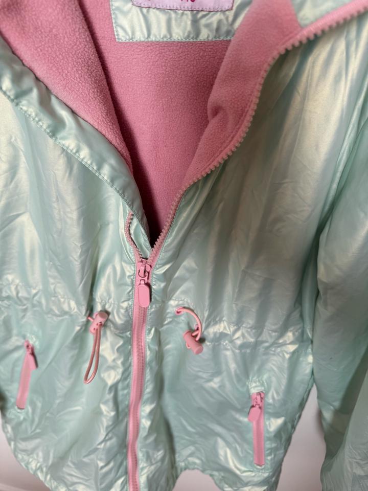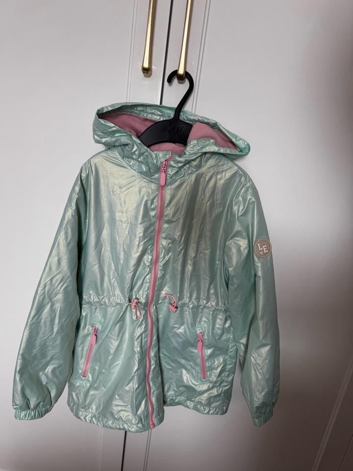 Утепленная ветровка на весну. Внутри флис, снаружи плащовка. Написано 140 размер, но доча одевала когда 128 была. Артикул: 490719