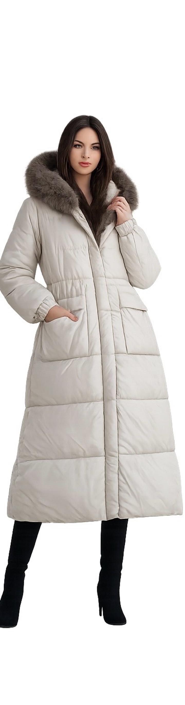 После химчистки! Зимний пуховик очень теплый (на гусином пуху),в цвете топленое молоко, удлиненный, воротник можно закрыть, носилась один сезон Артикул: 490733