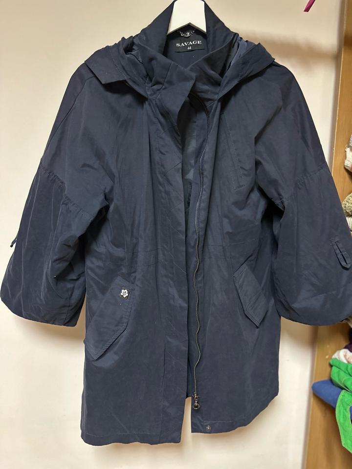 Стильная тёмно-синий тренч бренда Savage. Модель свободного кроя с капюшоном и укороченным рукавом 3/4. Застёгивается на молнию, дополнена удобными накладными карманами. Лёгкая ткань хорошо защищает от ветра и подойдёт для прохладной весны или осени. Практичная и универсальная вещь, легко сочетается с джинсами, брюками и повседневными образами. Артикул: 491187