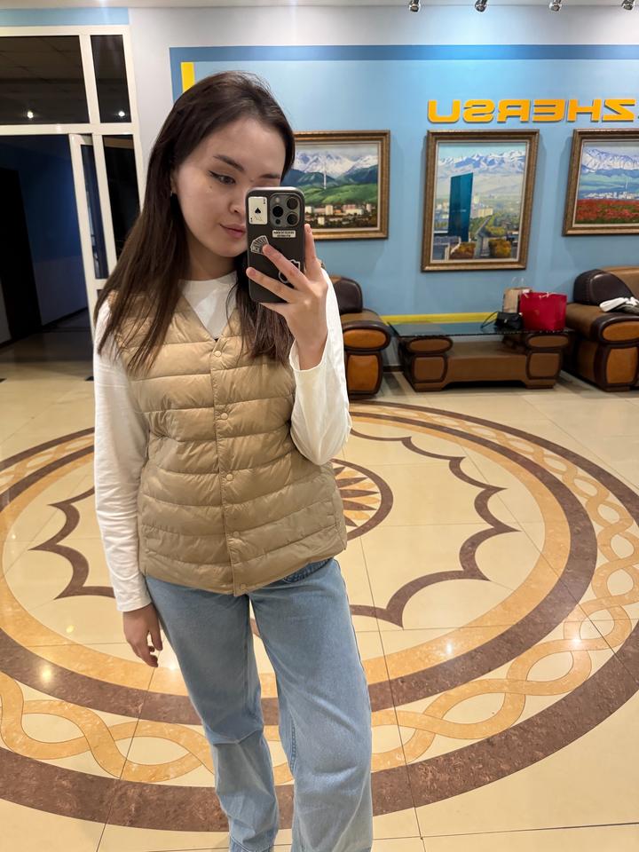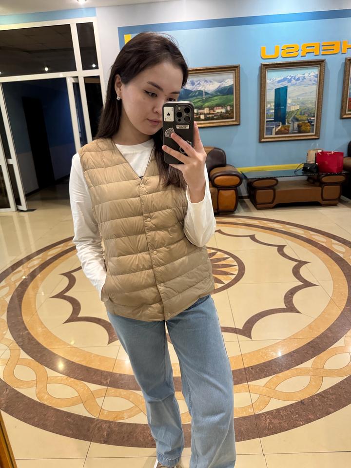 Безрукавка Uniqlo - размер one size, наполнение пух, новая, база на любой сезон. Очень красиво смотрится. Можно завернуть воротник во внутрь (есть кнопки) Артикул: 491231