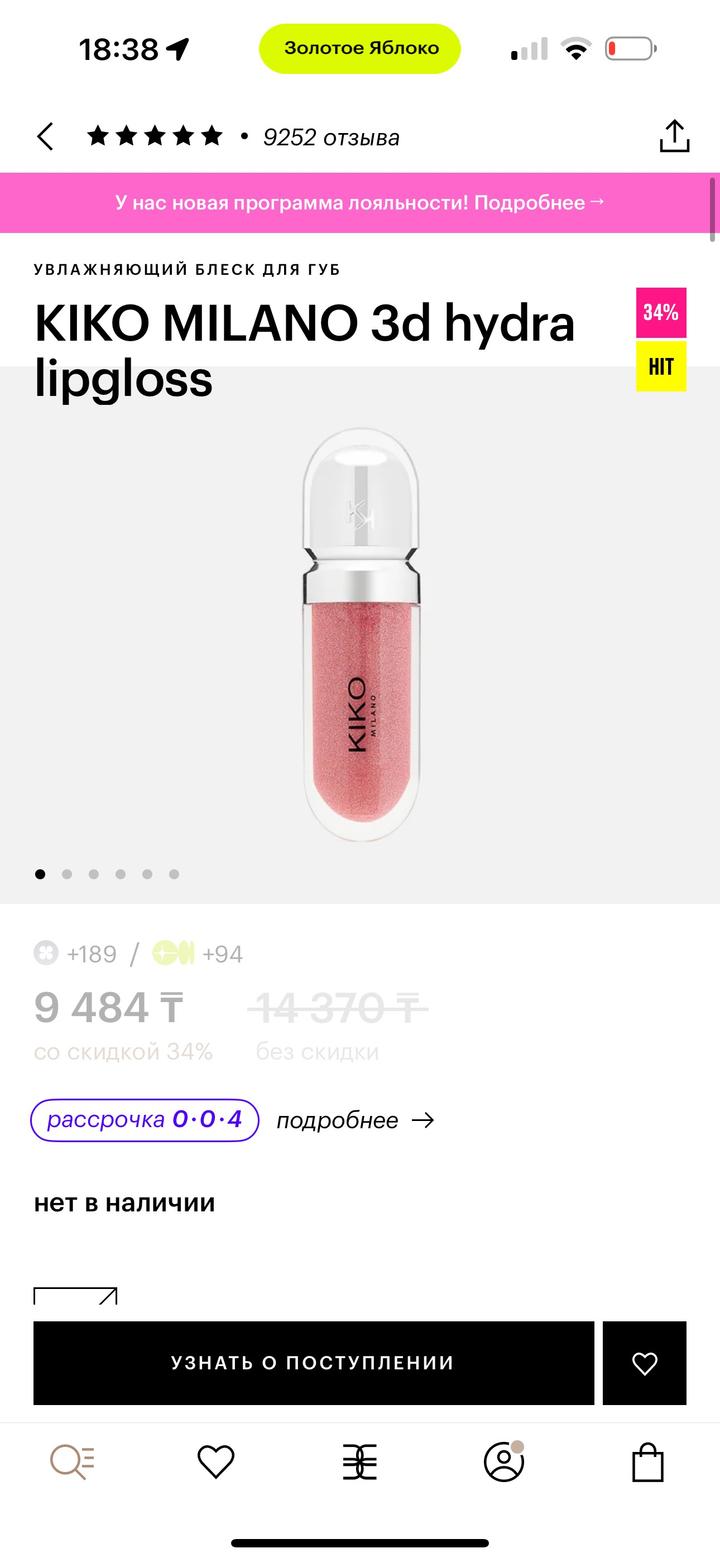 Блеск Kiko в оттенке 17. Использовала пару раз, не подошел по оттенку Артикул: 491273