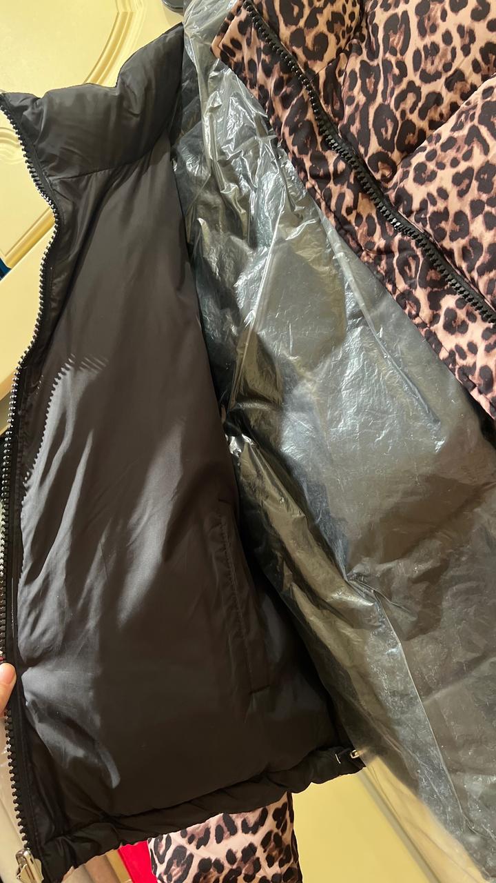 Двусторонний пуховик короткий, с одной стороны леопард с другой черный . Без дефектов Артикул: 491422