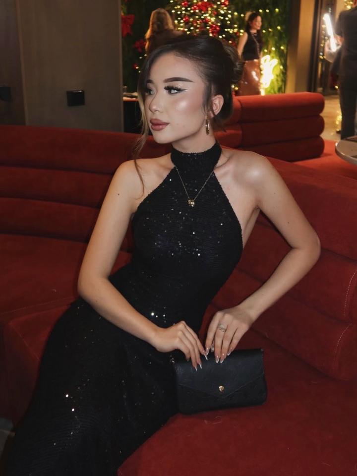 Черное платье блестящий, в идеальном состоянии носила 1 раз , подходит для роста 165 Артикул: 491539