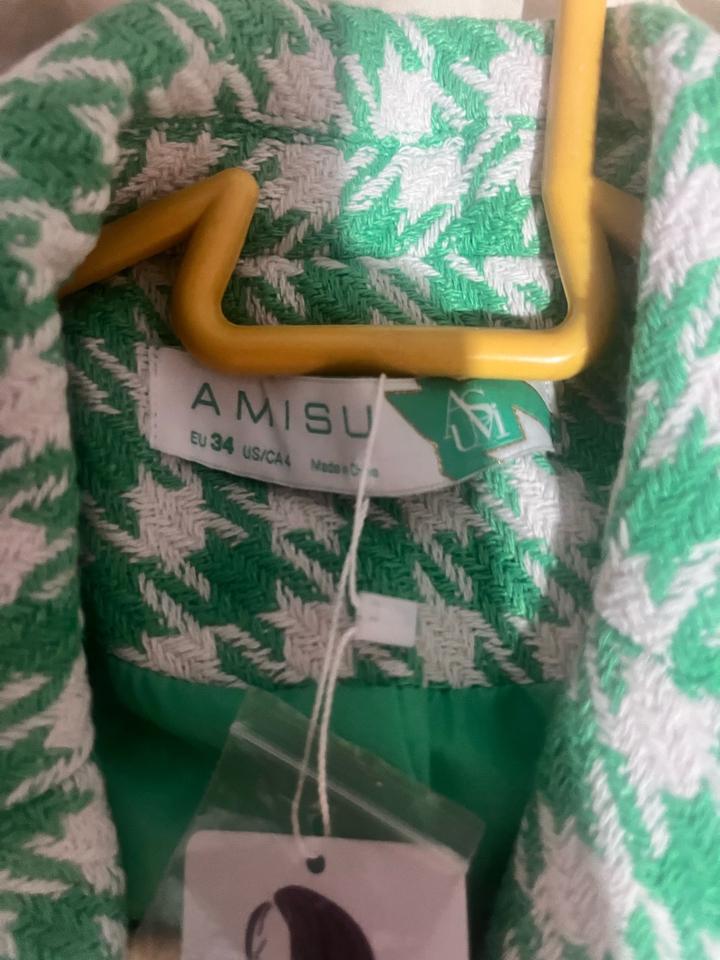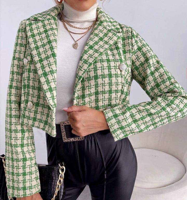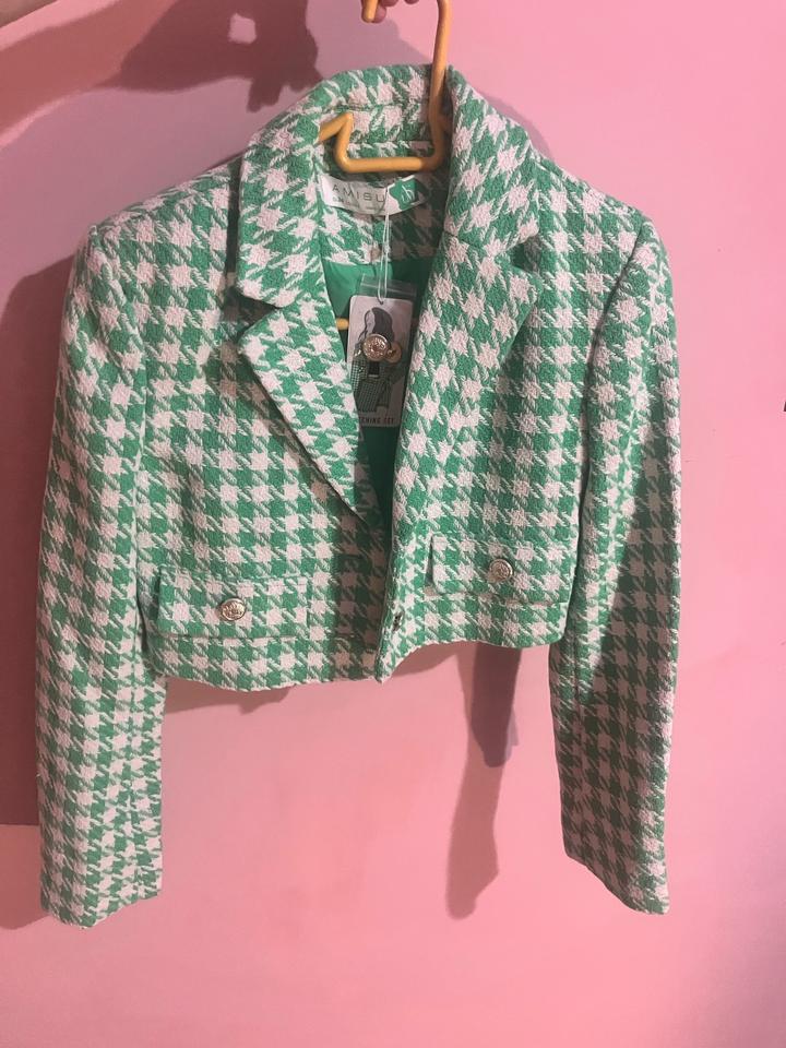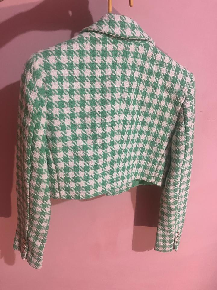 Укороченый твидовый пиджак в бело зеленую клетку AMISUXS