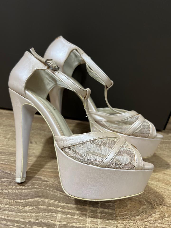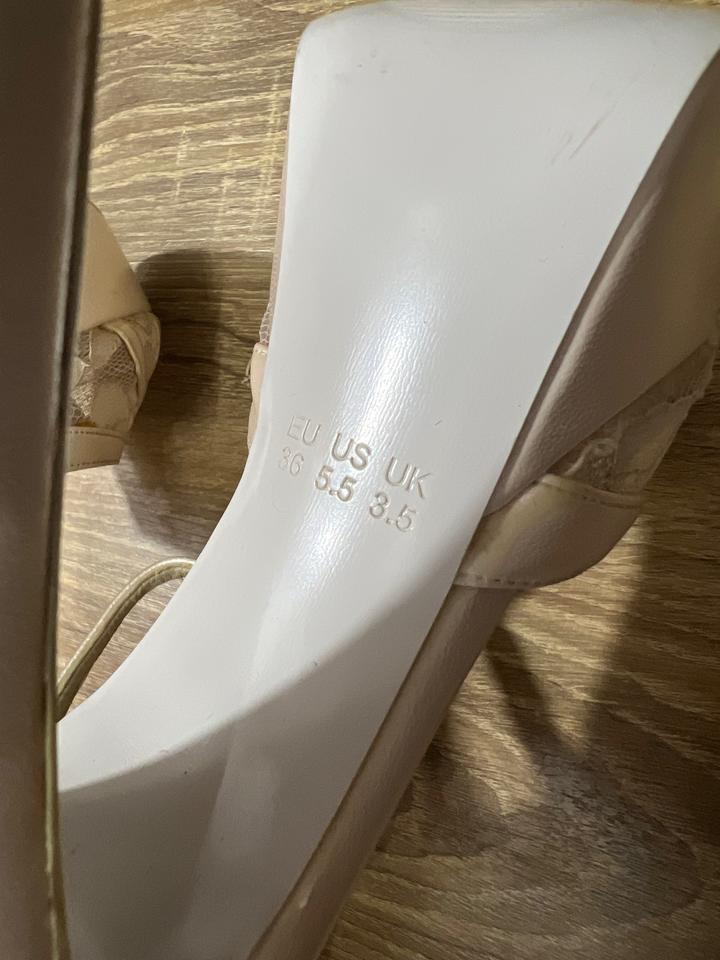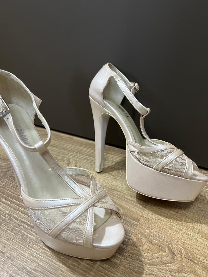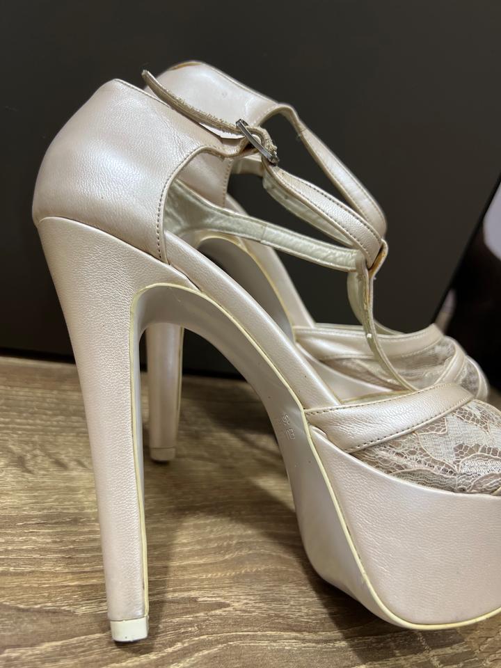 Босоножки покупали в магазине Ivory dress, носила только на свадьбу. Размер 37. Удобный каблук, стойкий. Цвет Айвори. Артикул: 493059