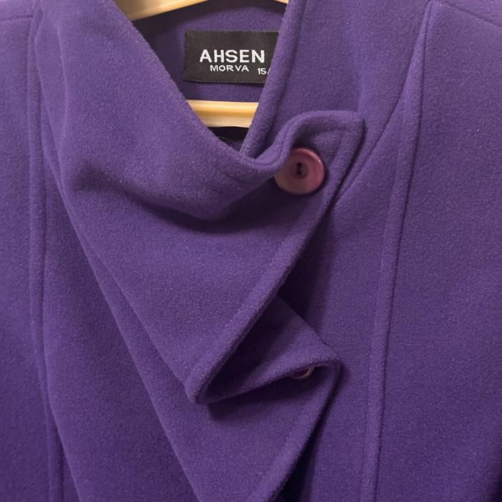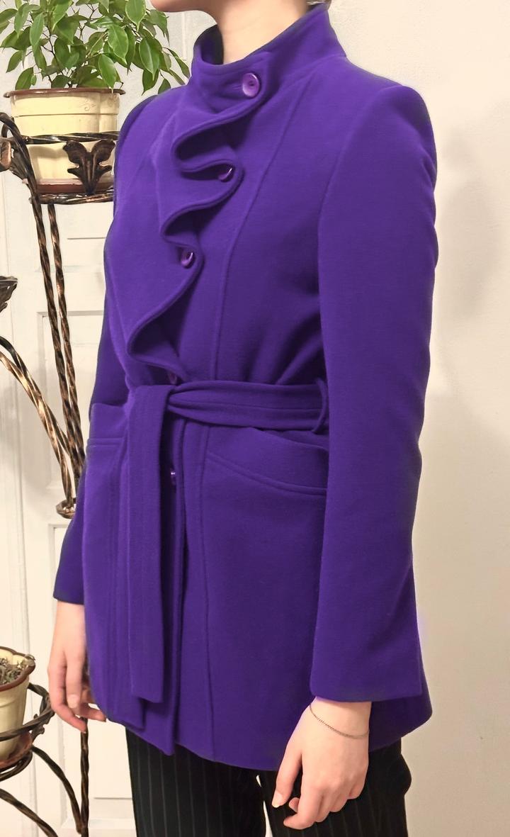 Винтажное пальто с драпированным воротником благородного фиолетового цветаXS