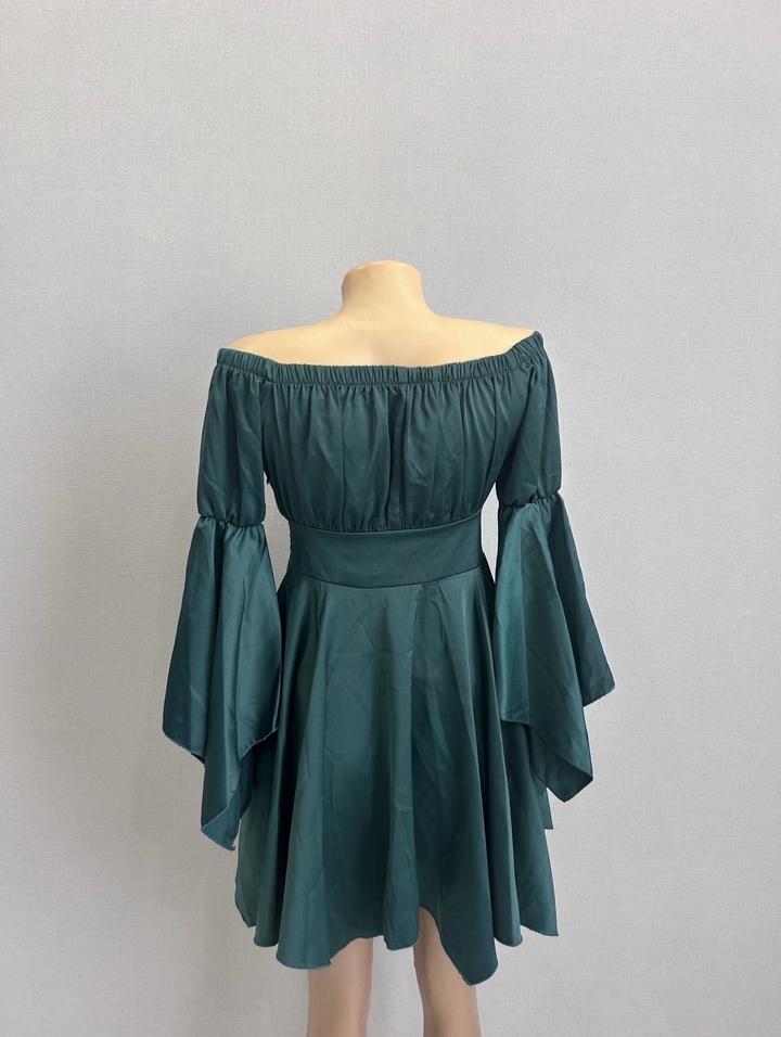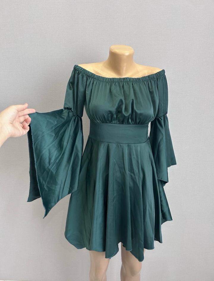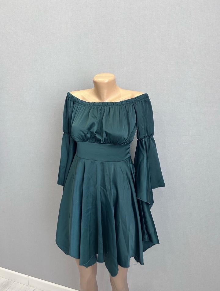 Красивое изумрудное атласное платье, xs, надето единожды на свадьбу. Мой рост на фото 155.! Артикул: 493386