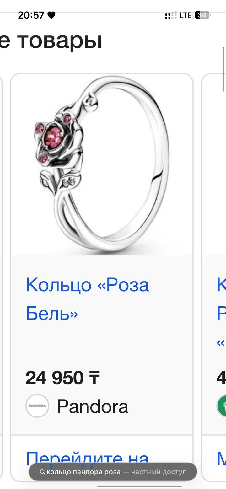 Кольцо Pandora “Роза Бель» Disney Пандора-