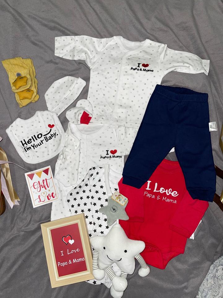 Новый комплект. Качество хлопок 100 %. Размер одежды от 0-3 месяцев. В комплекте игрушка, фото рамка, открытка, 3 шт Боди, 1 кофта, 1 штанишки, шапочка, носки, царапки, слюнявчик. Игрушка играет музыку при нажатии. Подойдет и мальчикам и девочкам. Идеально подходит в качестве подарка. Абсолютно новый Артикул: 493625