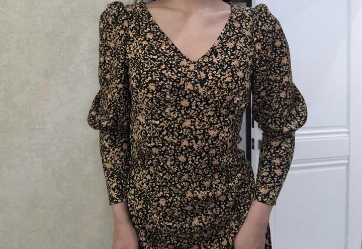 Платье очень приятной ткани, с интересными рукавами. Размер S/М. Мой рост 171 Артикул: 493825