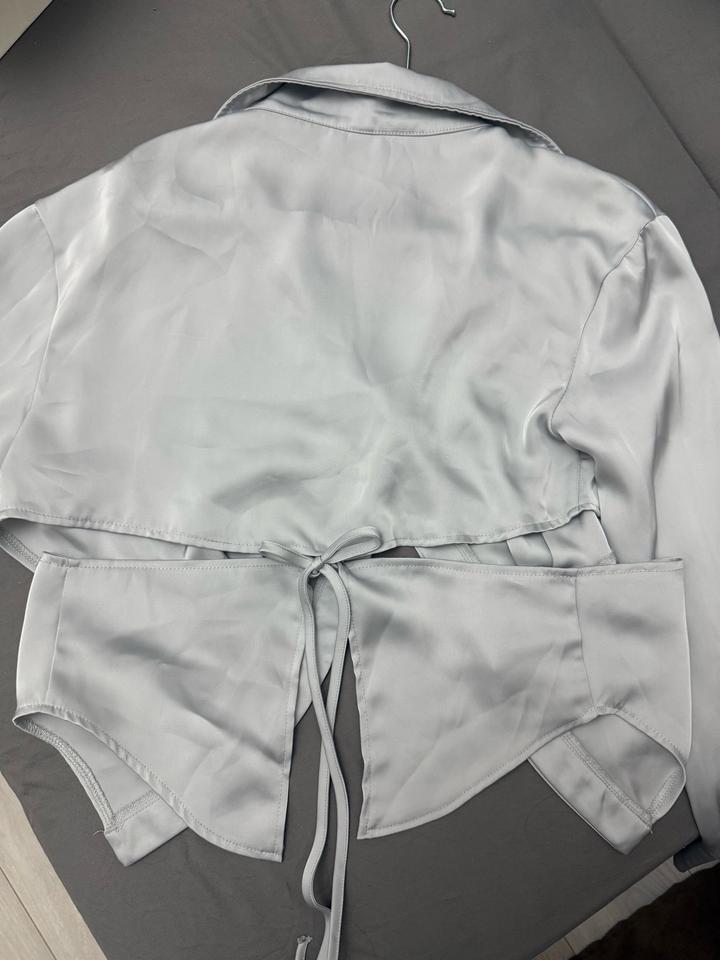 Очень интересная и красивая блузка, разрез завязывается сзади, можно надеть как захочешь. Открытая спинка, материал атласный. Размер M. Цвет светлый изумрудный Артикул: 493947
