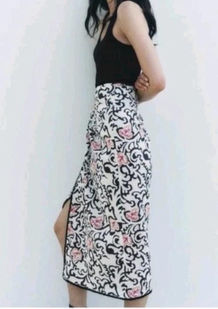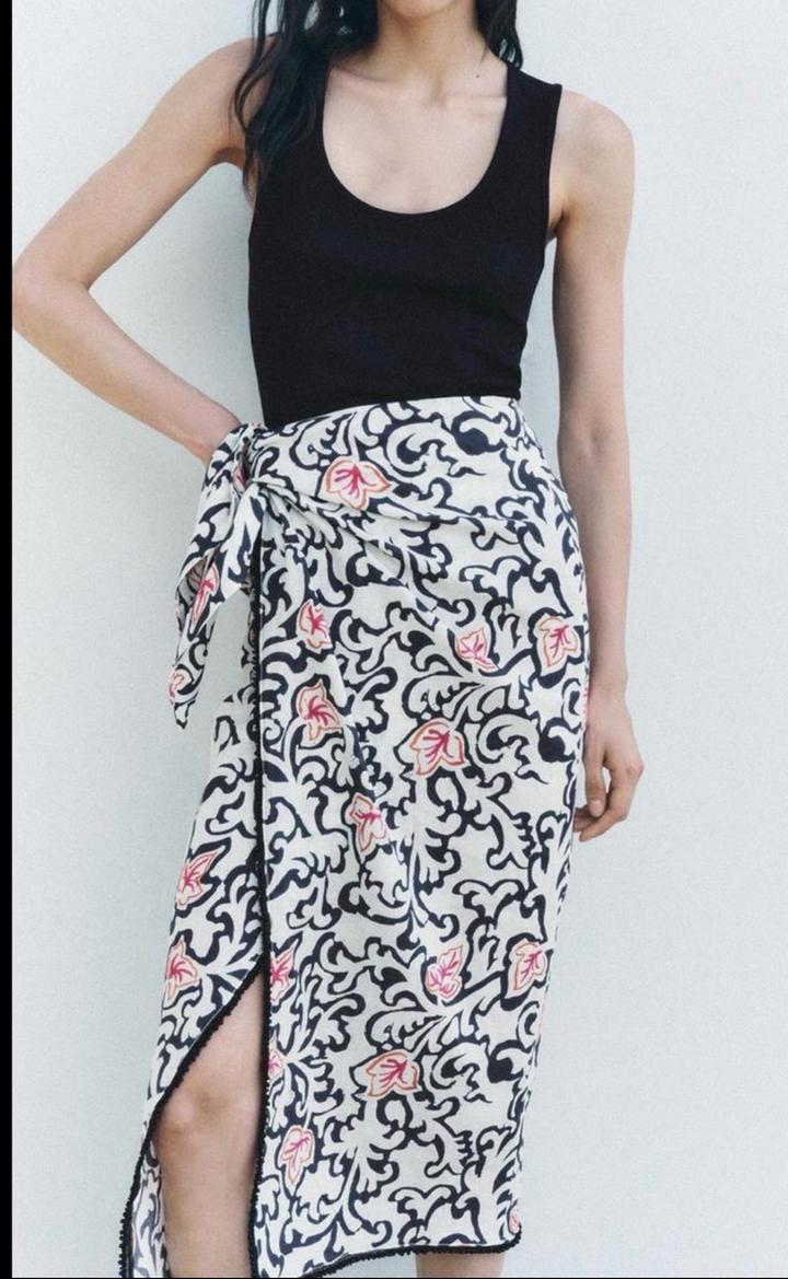 Новая юбка от ZARA 🐚 модель на запах, можно регулировать ширину талии и высоту посадки за счет завязок 🐚 края вышиты черным бисером 🖤 стильный вариант на лето 🐚 размер L-XL, но подойдет и на S-M, ширина регулируется 🖤 Артикул: 494006