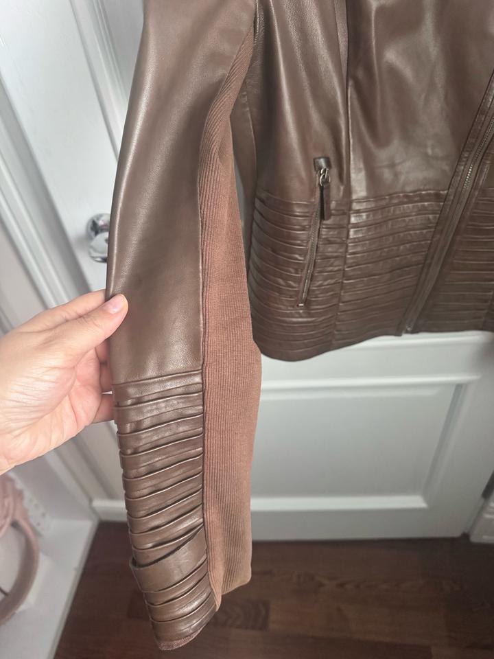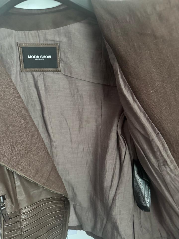 Кожаная куртка коричневая, тканевые вставки на рукавах. Внутри отделка лен и хлопок. Покупала в Турции Артикул: 494132