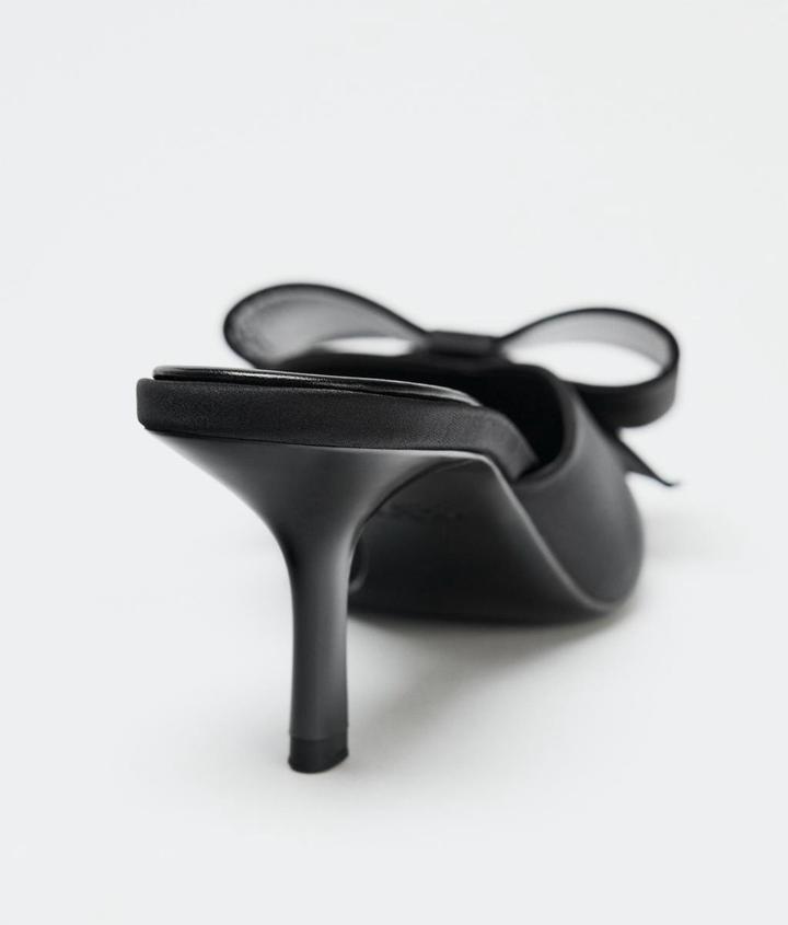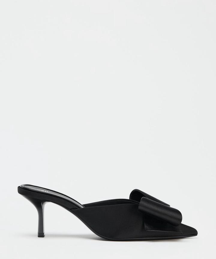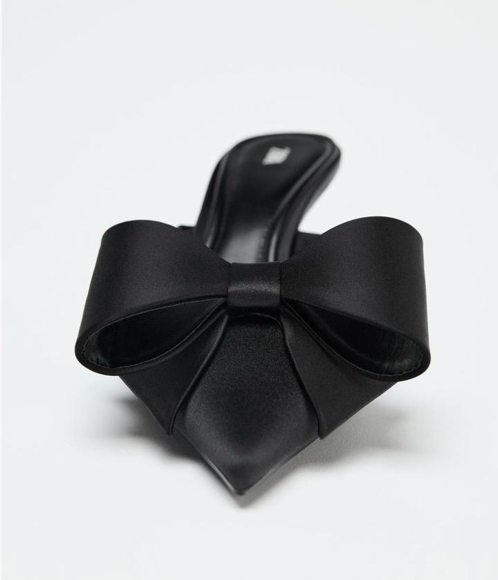 Туфли-мюли на каблуке. Большой бант спереди. Высокий тонкий каблук. Заостренный носок. Высота каблука: 6 см. СОСТАВ ВЕРХ 100% ПОЛИЭСТЕР ПОДКЛАДКА 85% ПОЛИЭСТЕР 15% ЭЛАСТАН ПОДОШВА 100% ТЕРМОПОЛИУРЕТАН СТЕЛЬКА 96% ПОЛИУРЕТАН 4% ПОЛИЭСТЕР Артикул: 494164