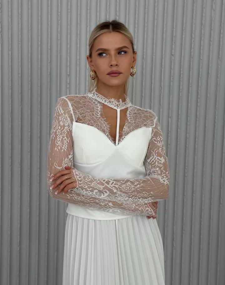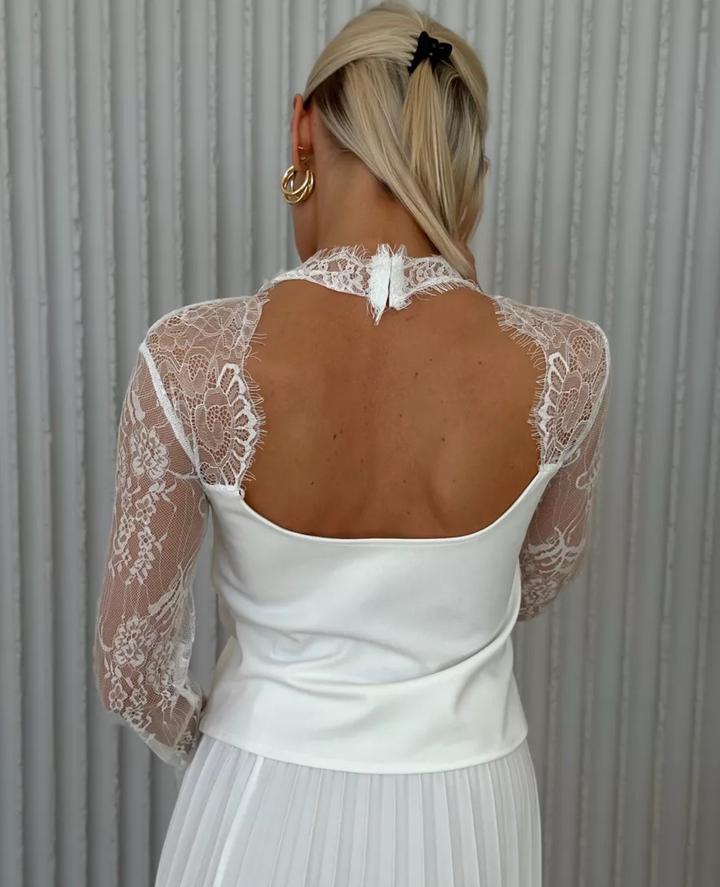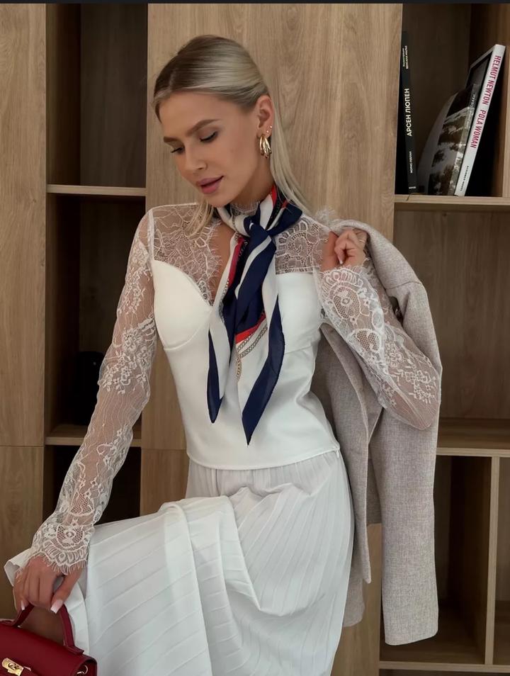 Белый топ с кружевами от Emberens. Размер 42-44. Брала за 18 580 тг. Артикул: 494182