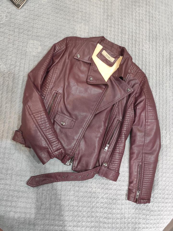 Бордовая куртка коженка с утеплением Артикул: 494196