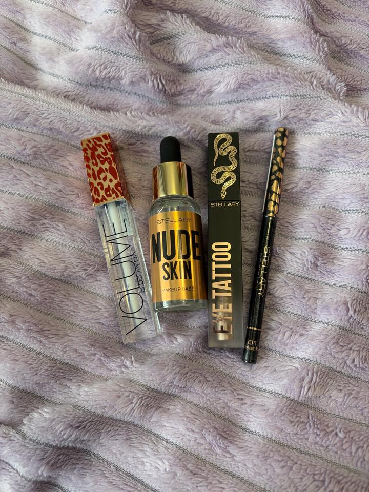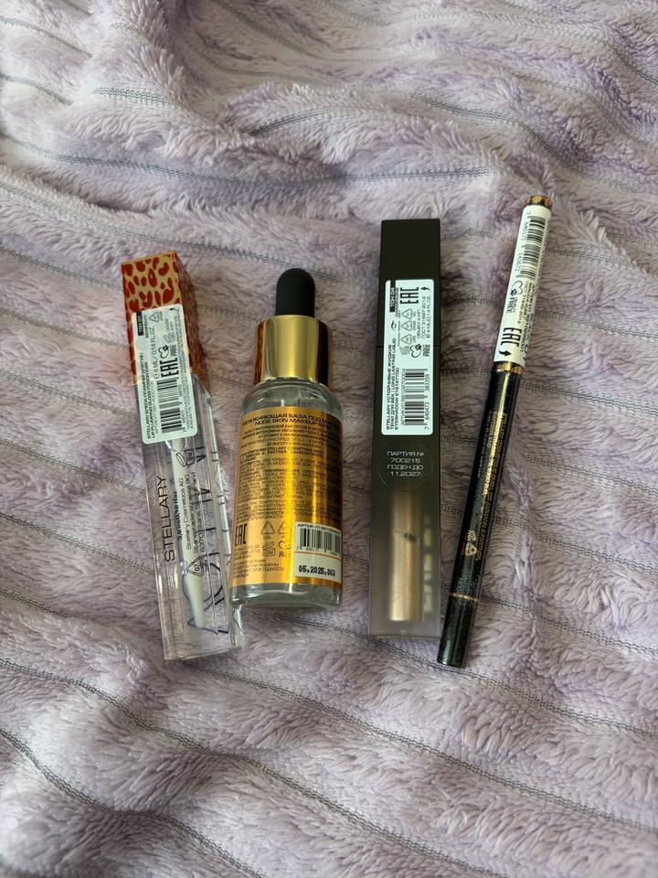 ❗️Заказ принимаю только через курьера от двери до двери❗️ Новая косметика от Stellary. Прозрачный блеск для губ (01 serpenty), Увлажняющая база под макияж, Жидкие тени для век (04 champange), Черный каял для глаз (01 black), Положу в красивую коробку или в пакетик Артикул: 494243