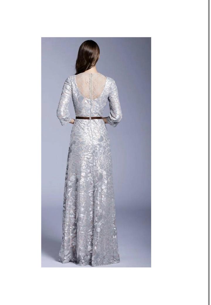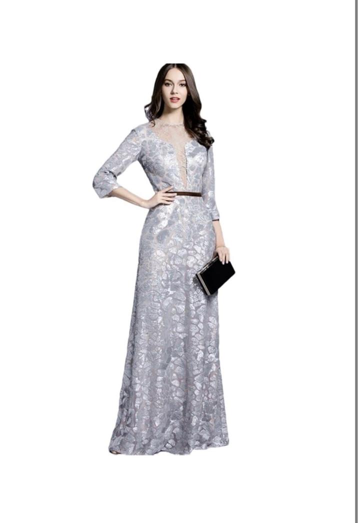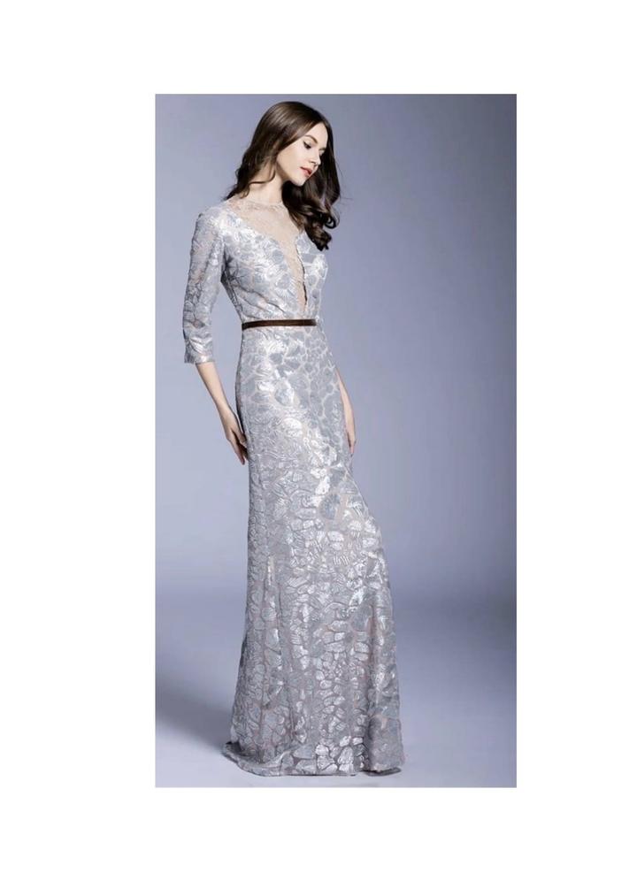 Серебристое платье макси. А-силуэт. Нежные вставки прозрачного кружева на спине и в зоне декольте. Артикул: 494244