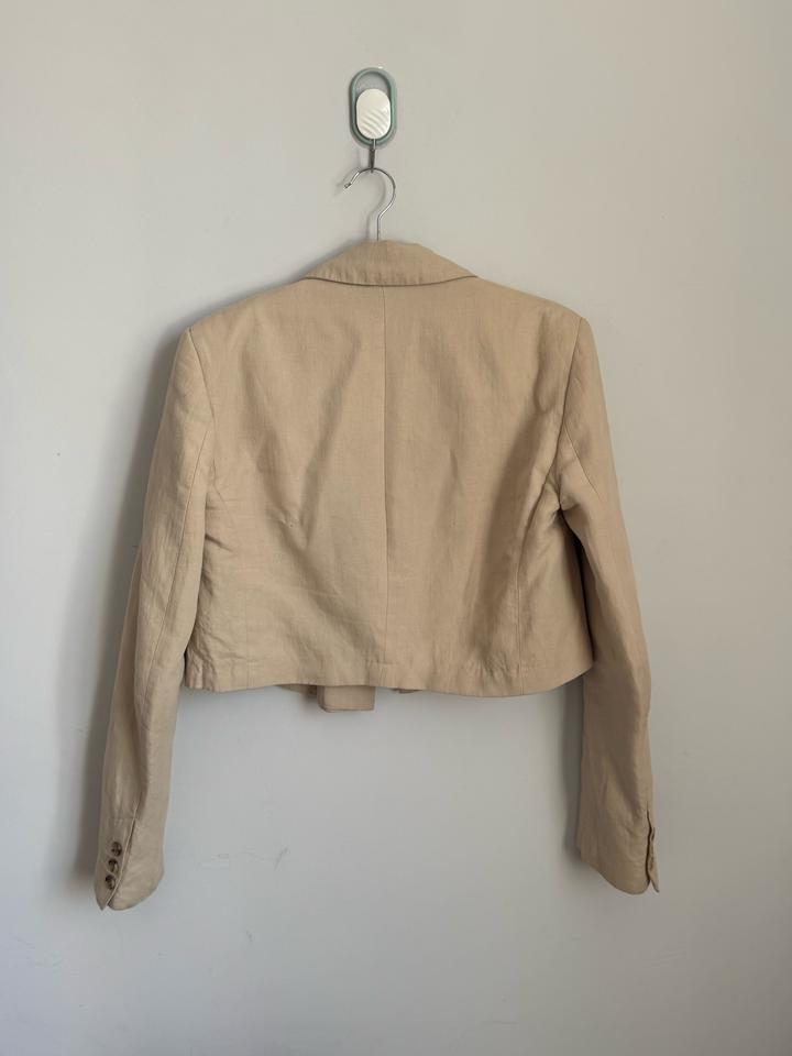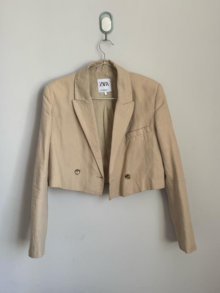 Стильный укороченный пиджак ZARA в бежевом цвете. Чистый, без запаха, состояние отличное. Ткань мягкая и приятная, смотрится красиво. Легко сочетается с разной одеждой — подходит как для повседневных, так и более стильных образов. Артикул: 494394