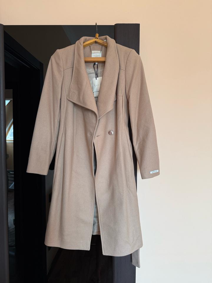 Коричневый - Шерстяное пальто миди с запахом и поясом Ted Baker Размер 42 , абсолютно новое Артикул: 494705