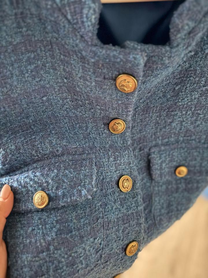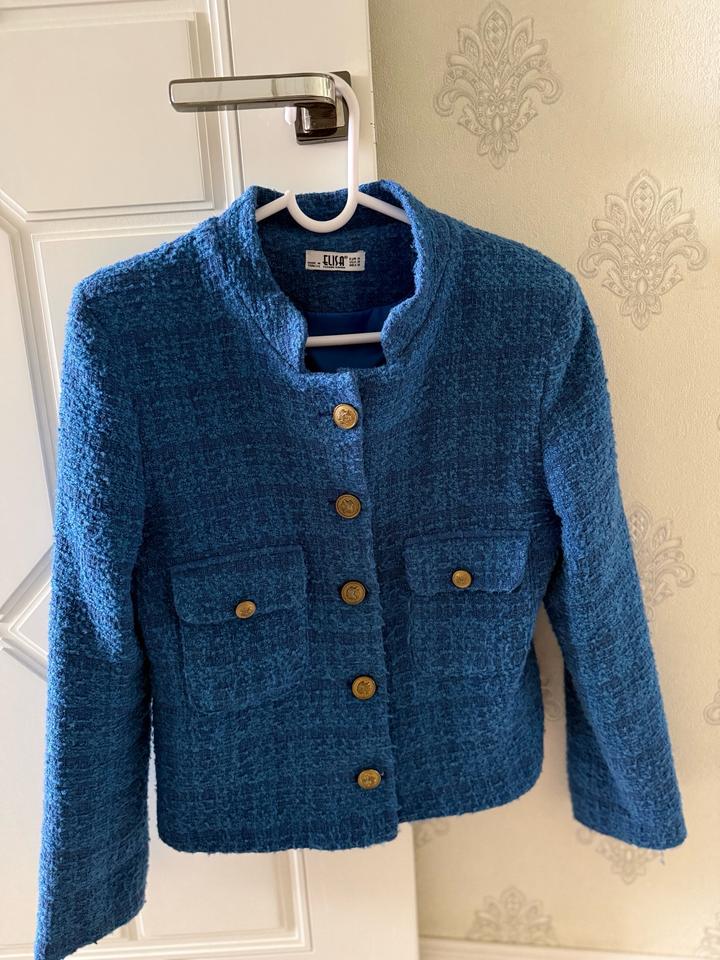 Стильный твидовый пиджак синего цвета 🇹🇷 Турецкое производство. Очень качественный и модный, отлично сидит по фигуре. Подойдет как для офиса, так и для повседневных образов. Состояние отличное, надевался несколько раз. Размер: М (38) Артикул: 494723